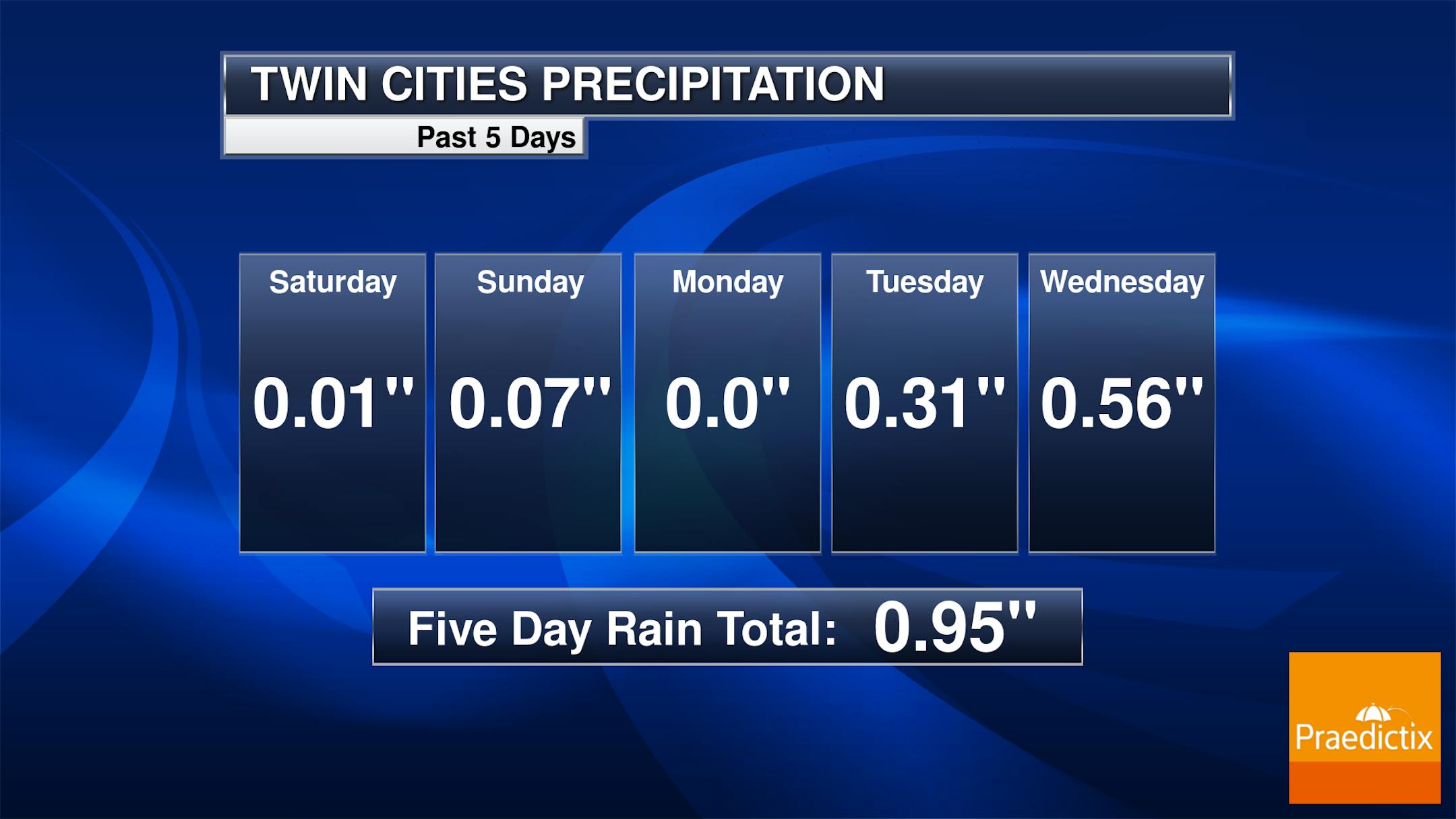 On Wednesday, MSP picked up 0.56" of rain, which was more rain than we saw in September and October COMBINED (0.48" between the two months). Between Tuesday and Wednesday we saw 0.87" fall.