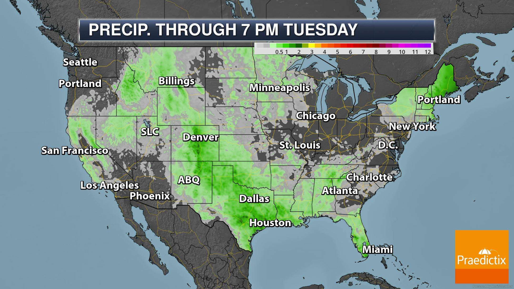 Looking at rainfall from storms Monday into Monday Night, they're going to be sporadic once again, meaning not everyone will see rain. If you end up under a downpour, rainfall tallies could quickly add up, with a quarter inch or more possible in those situations. The severe threat is low, but some small hail or gustier winds can't be ruled out.