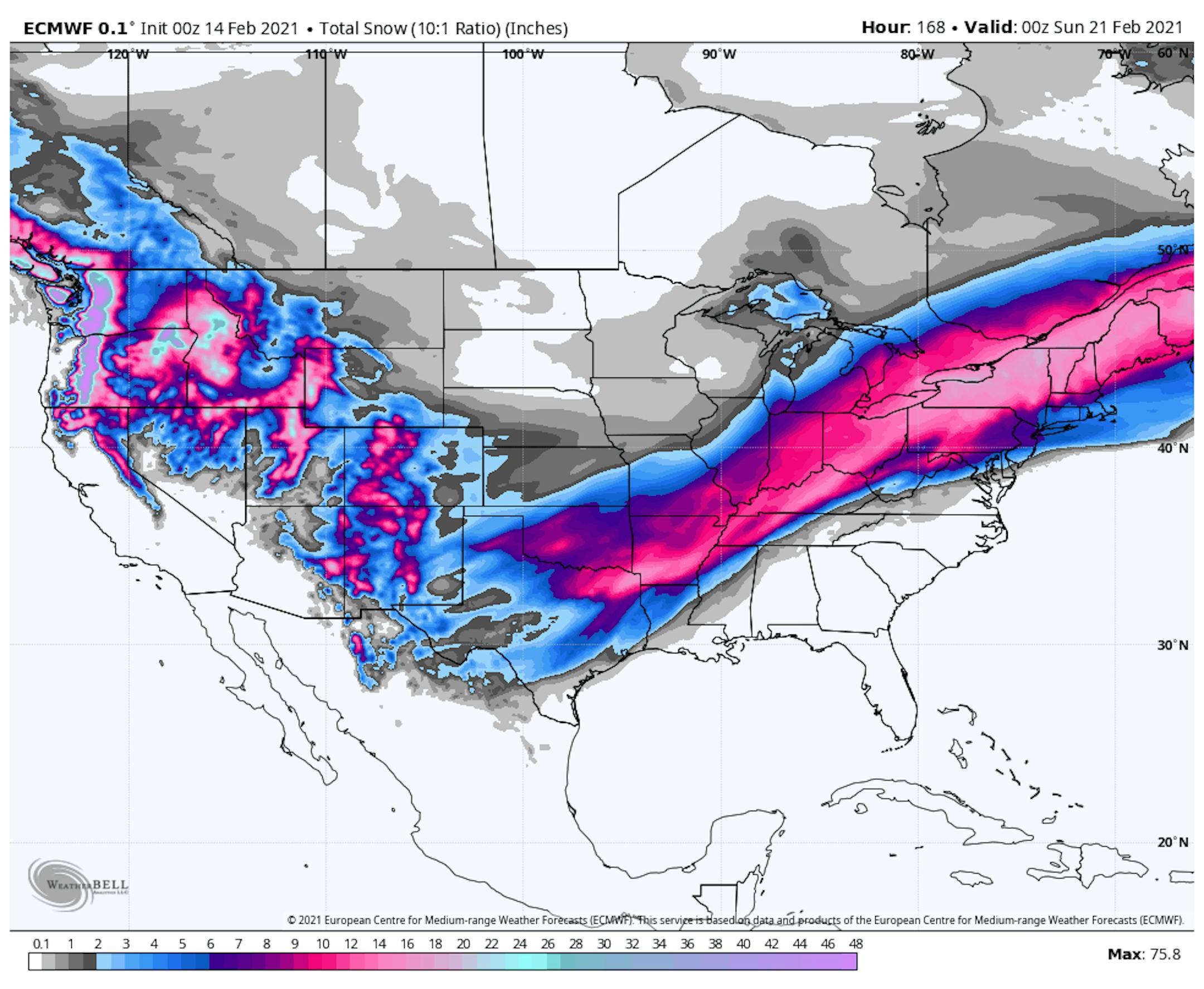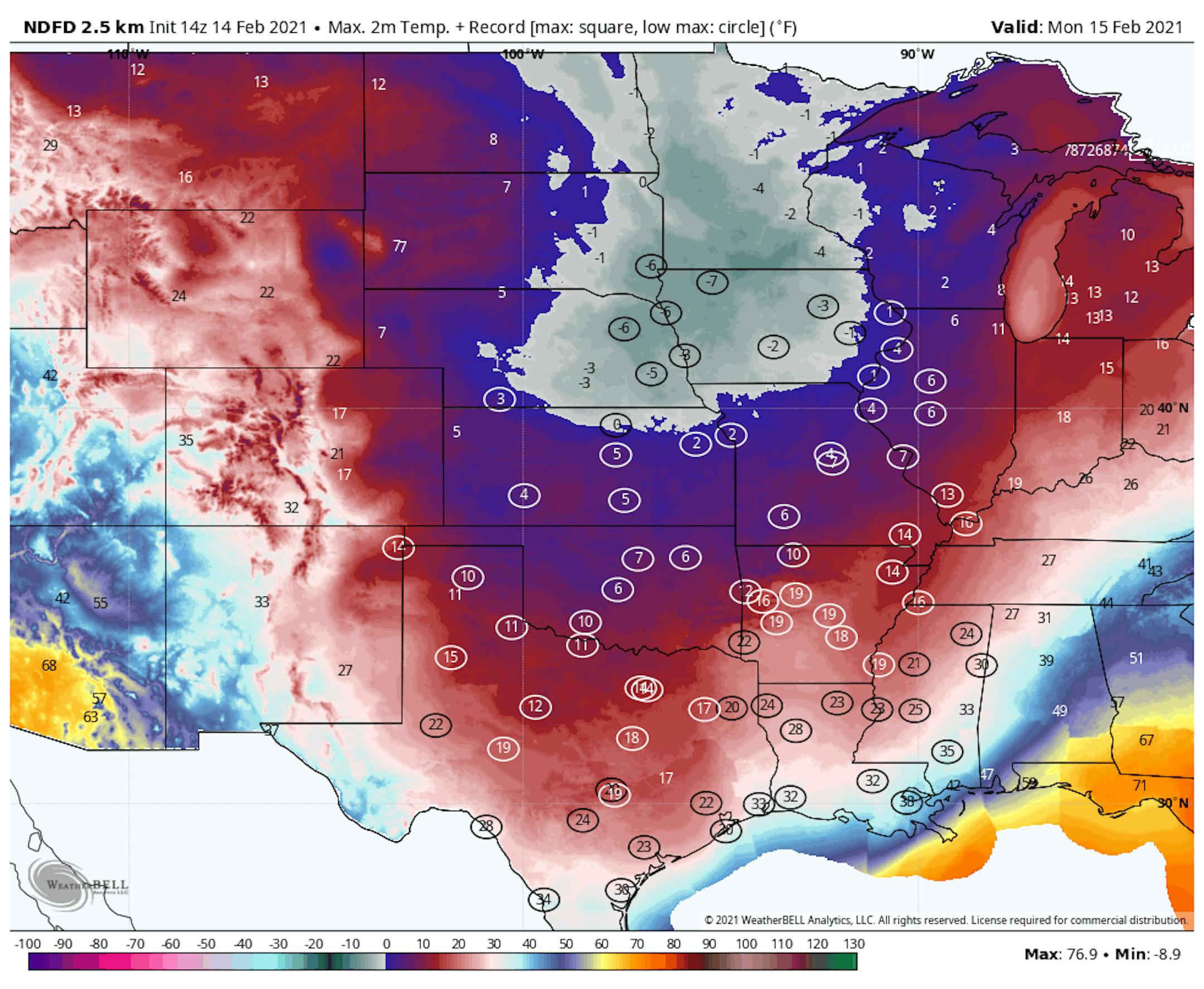 Sunday, February 14th was the 9th consecutive day with sub +10F high temps at MSP. The forecast calls for sub +10F highs again on Monday and Tuesday, which would bring our stretch to 11 consecutive days and would put us 8th longest stretch on record.