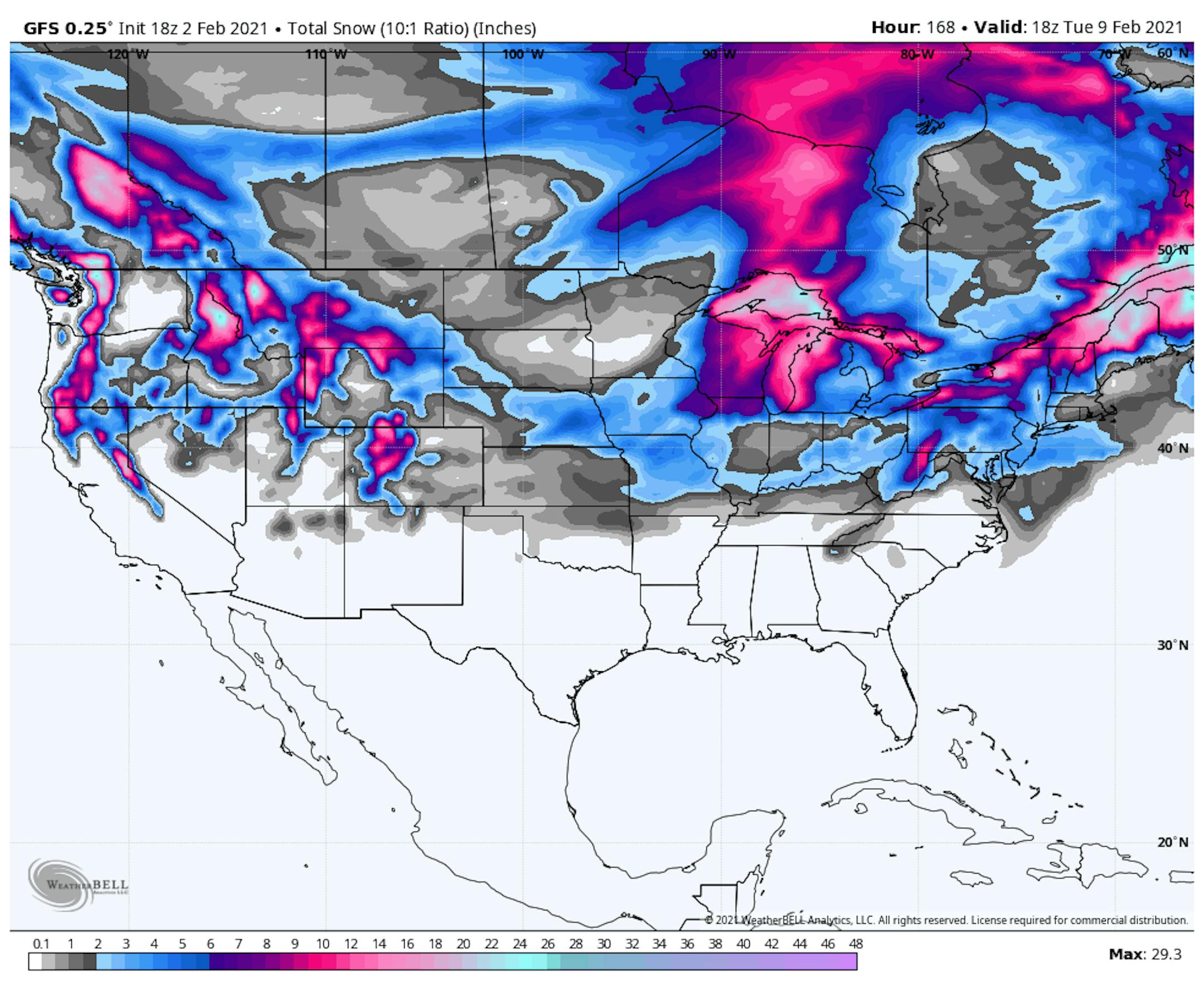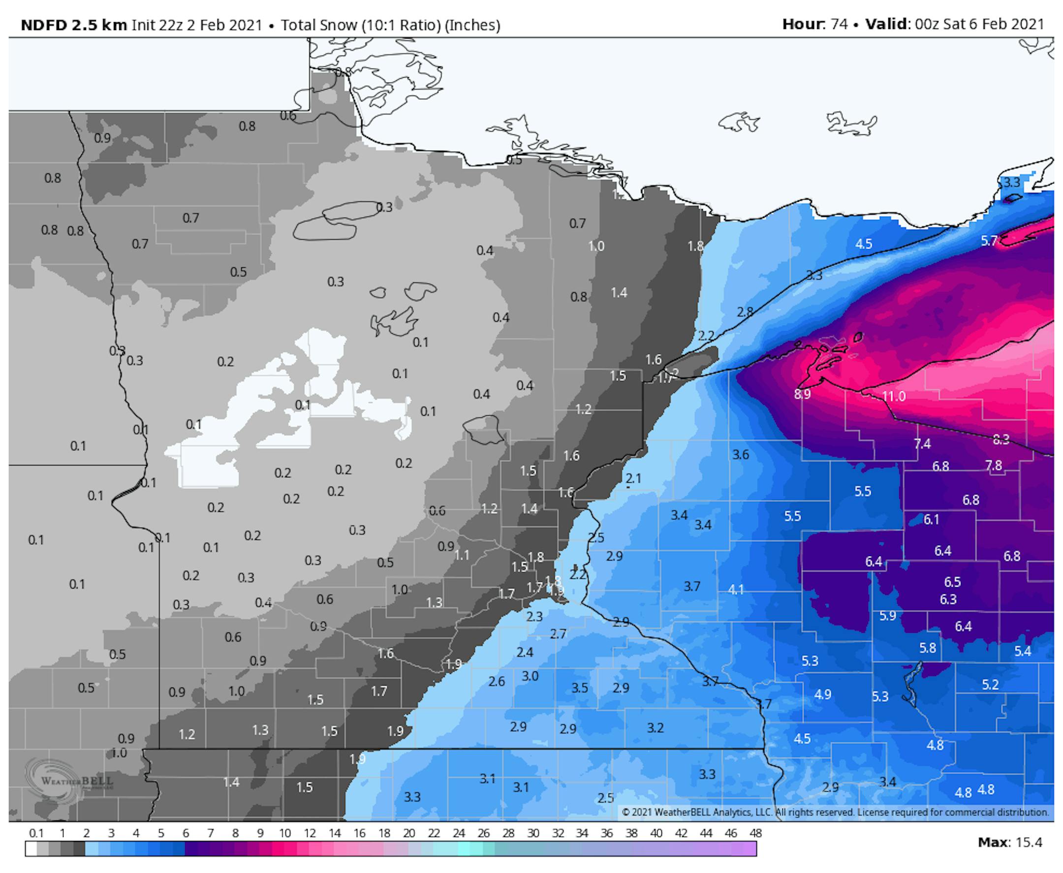 Parts of the state will get clipped by snow will develop on the leading edge of an Arctic front that will move through the region on Friday. The heaviest snow will be found in Wisconsin and the U.P. of Michigan with plowable amounts of +6" possible there.