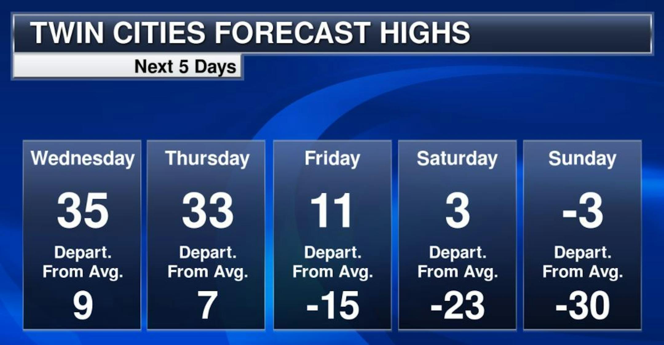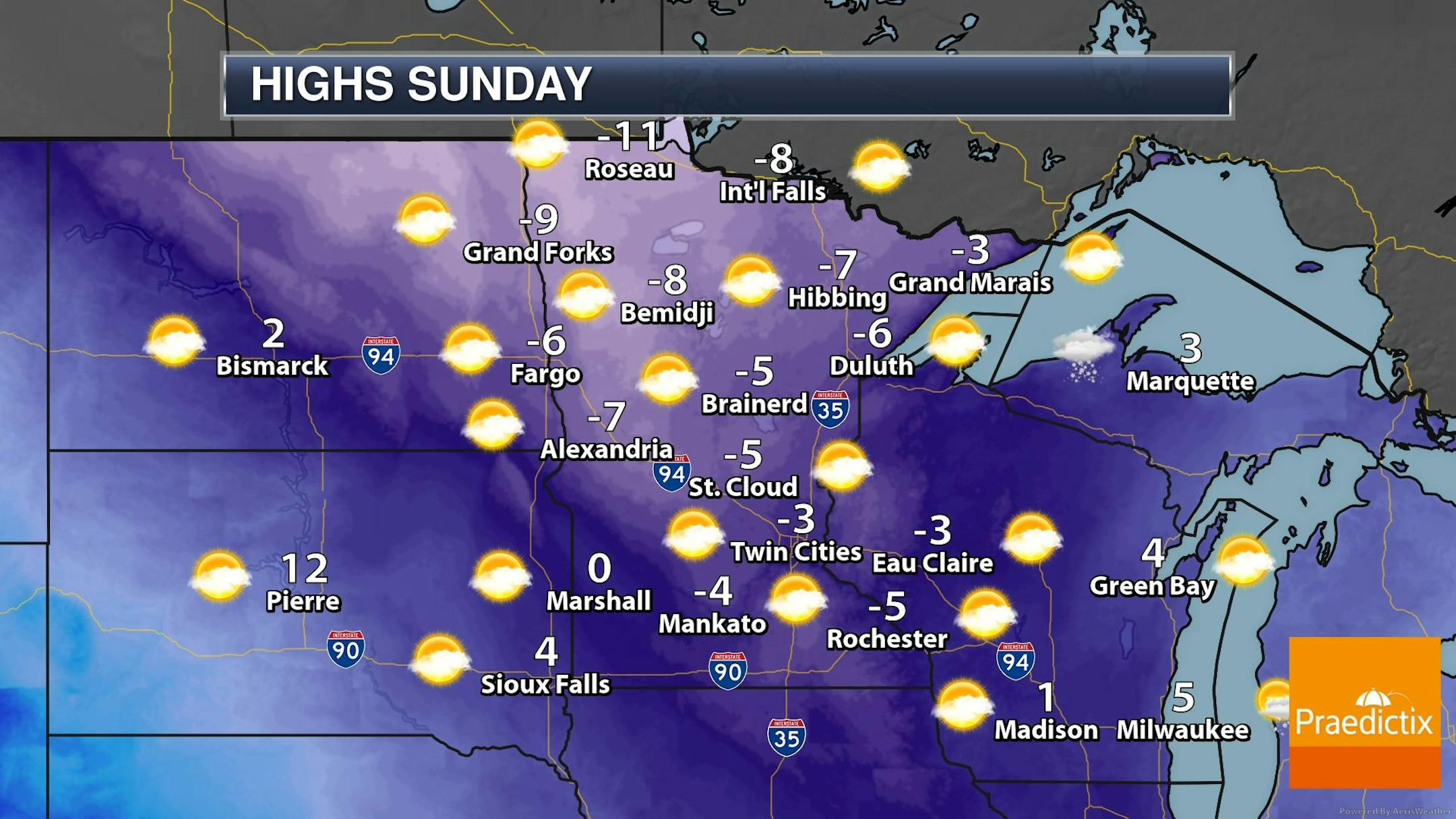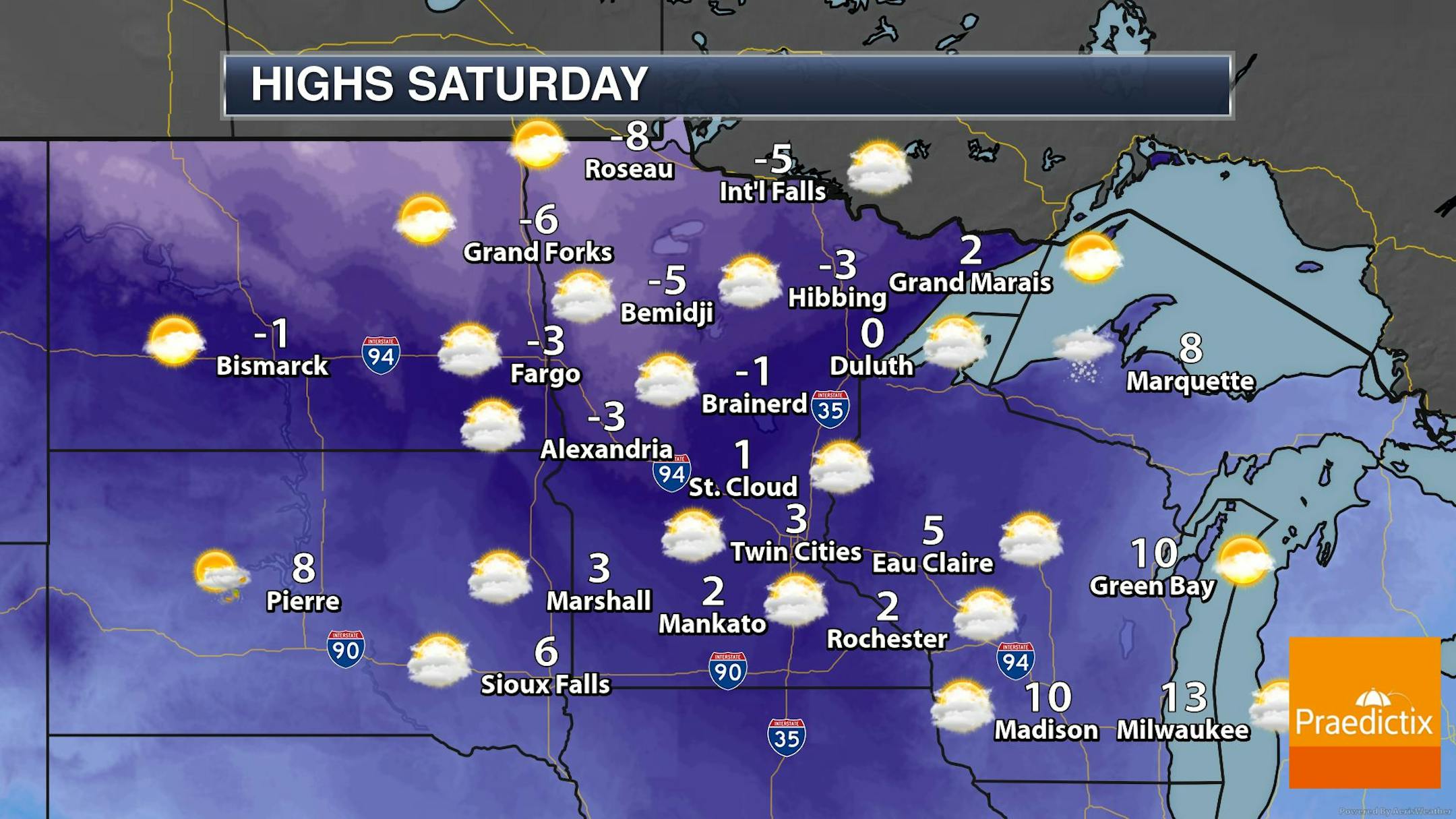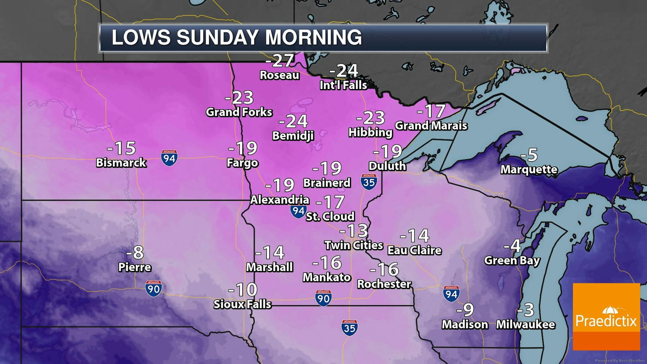 It'll be a dangerously COLD weekend with temperature readings likely staying below 0F for many across the northern half of the state. The Twin Cities should warm to a few degrees above 0F for a few hours on Saturday, but will dip into the teen below zero Sunday morning and not get above zero again (perhaps) until Monday afternoon if we're lucky. Note that wind chill values will likely go below zero on Thursday night and won't go above zero until sometime next week!