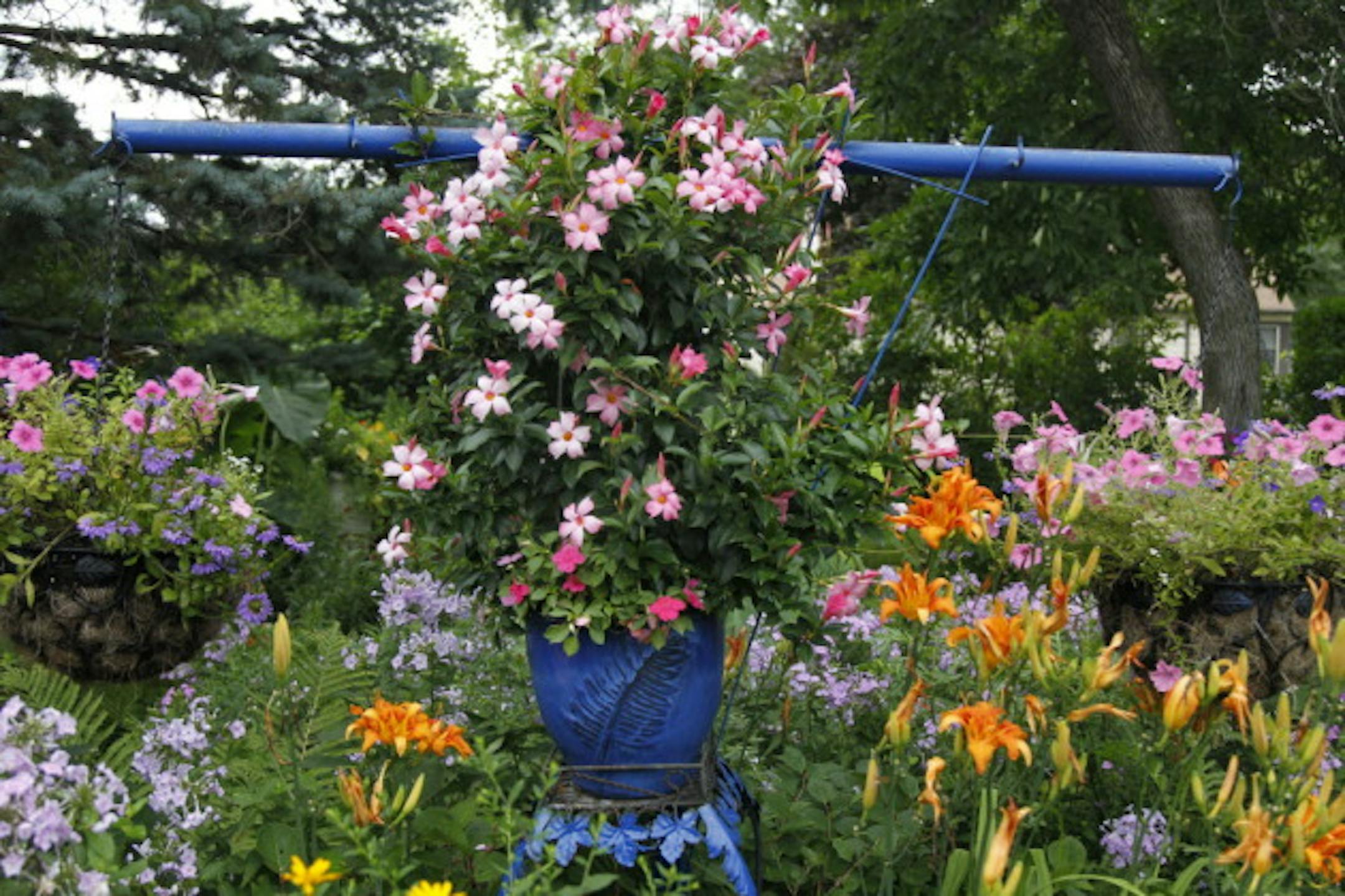 Color can do a lot to perk up and unify a landscape, as well as the house itself. One of last year's Beautiful Gardens contest winners used bright cobalt-blue containers to create a unifying color scheme in her garden. Even a vintage clothesline pole, used as a trellis, got a coat of cobalt spray paint.