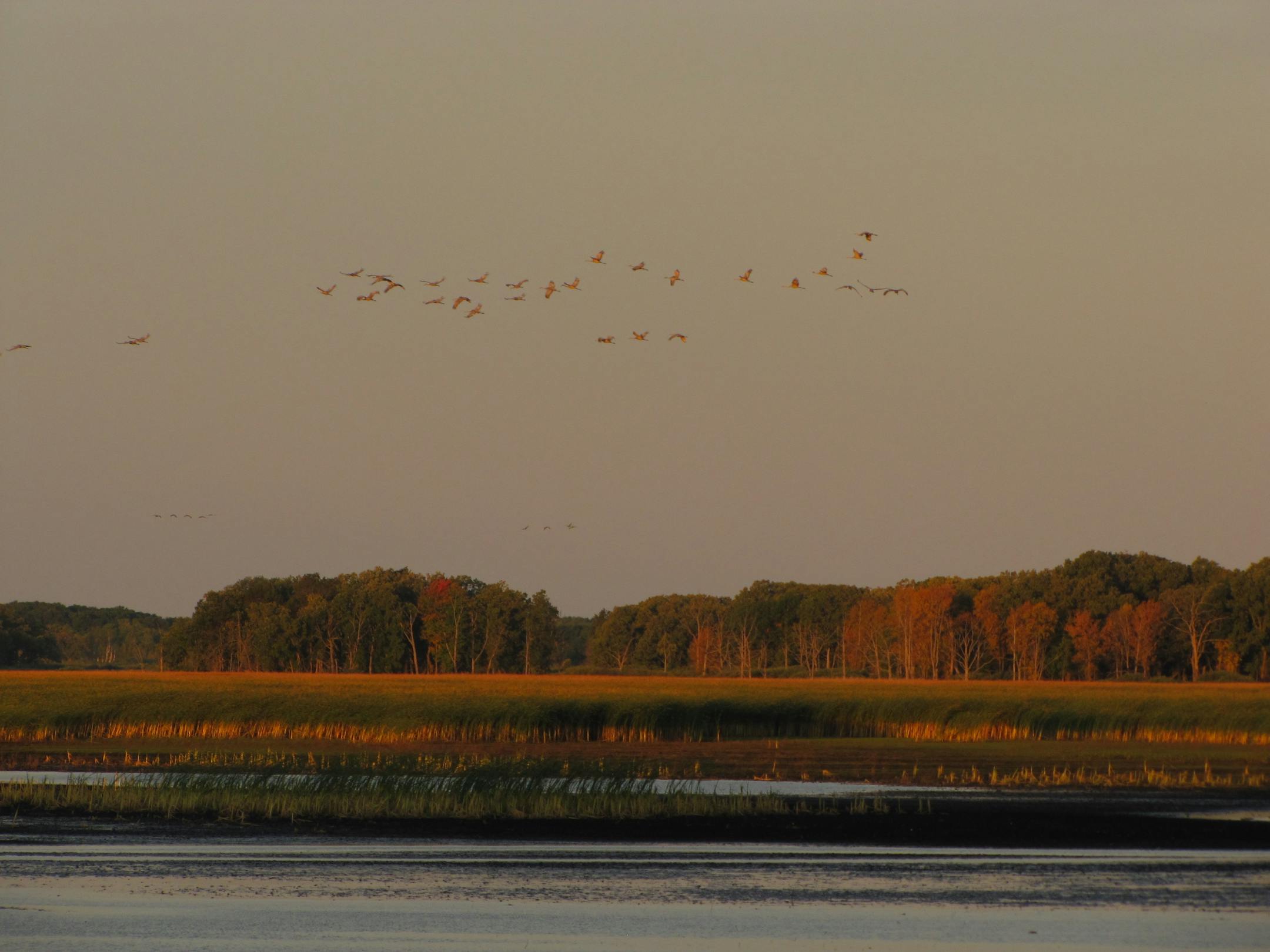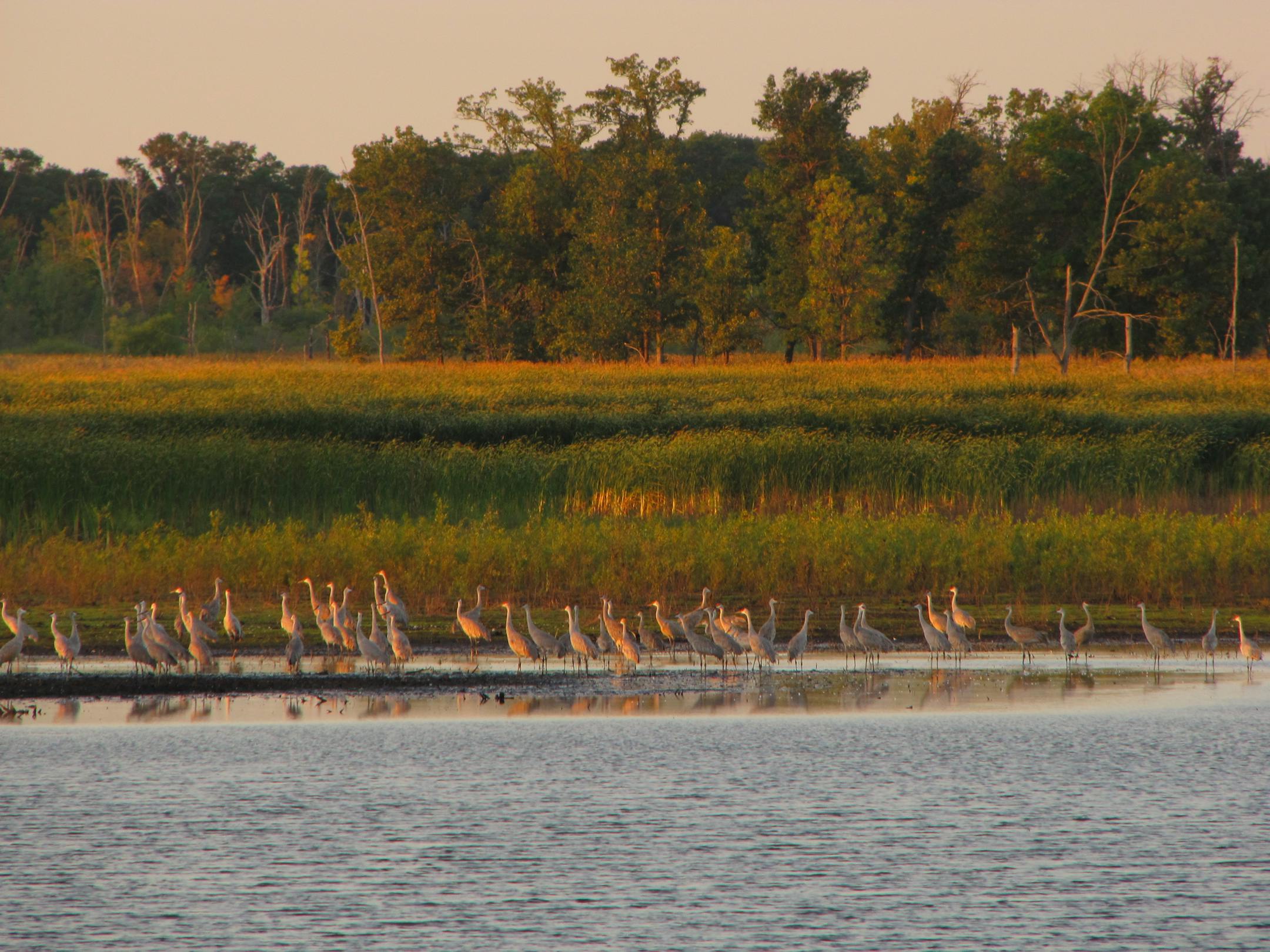 In the mid-1940s, their numbers were down to about two dozen nesting pairs in the whole nation. In the past 10 years, they've made enough of a surge here and across the country that Minnesota even allows some crane hunting in the northwestern part of the state. Thousands of the greater sandhill species, standing almost 5 feet tall apiece, gather at the refuge on their way to Florida and Georgia's Gulf Coast before the snow flies.