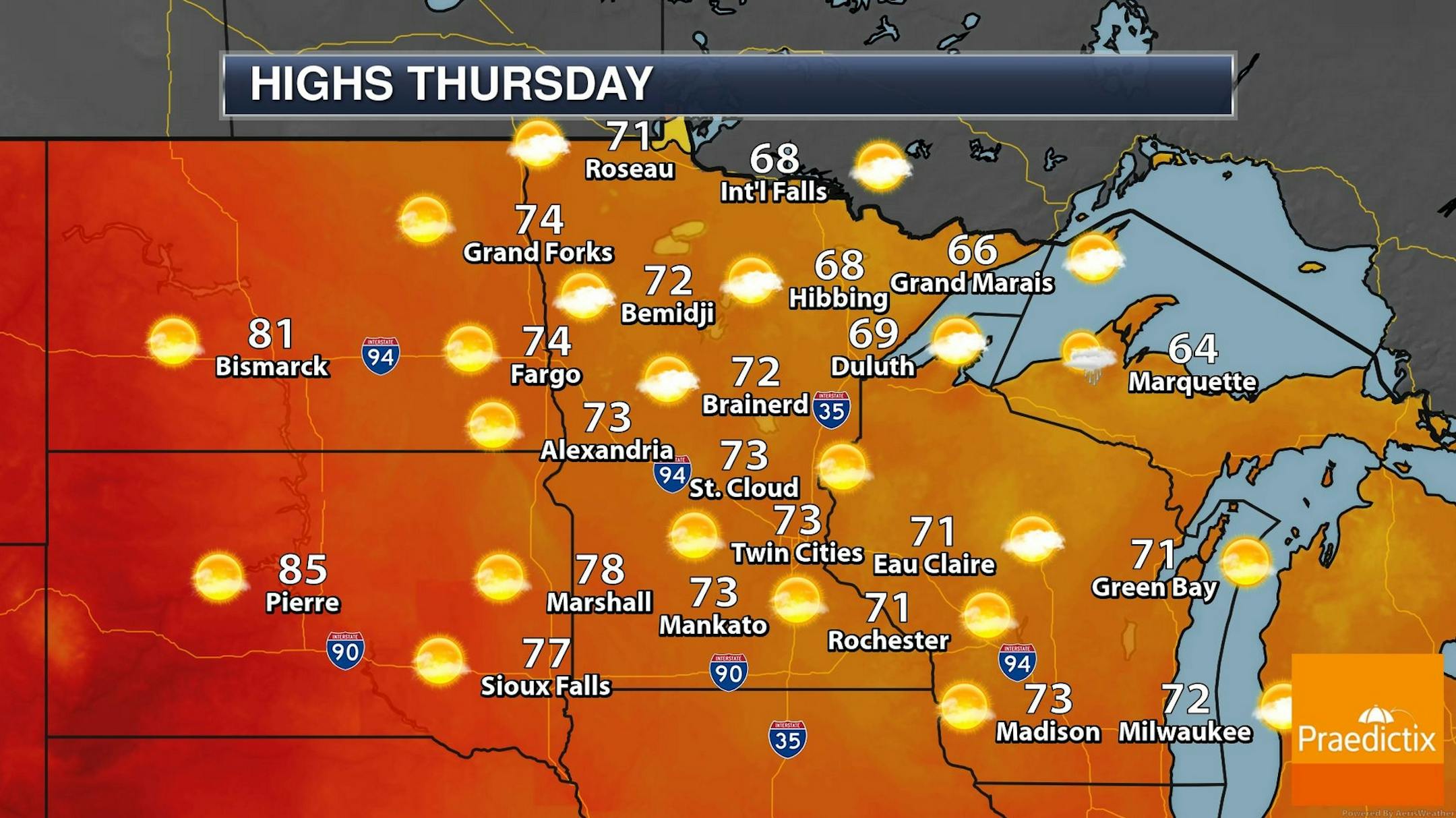 I see faint dribbles of Canadian air into next week, but no chilling slaps looking out 2 weeks. Lukewarm sunshine extends into this weekend, with T-storms Monday, but no soaking rains in sight. Here's hoping for a big pattern shift.