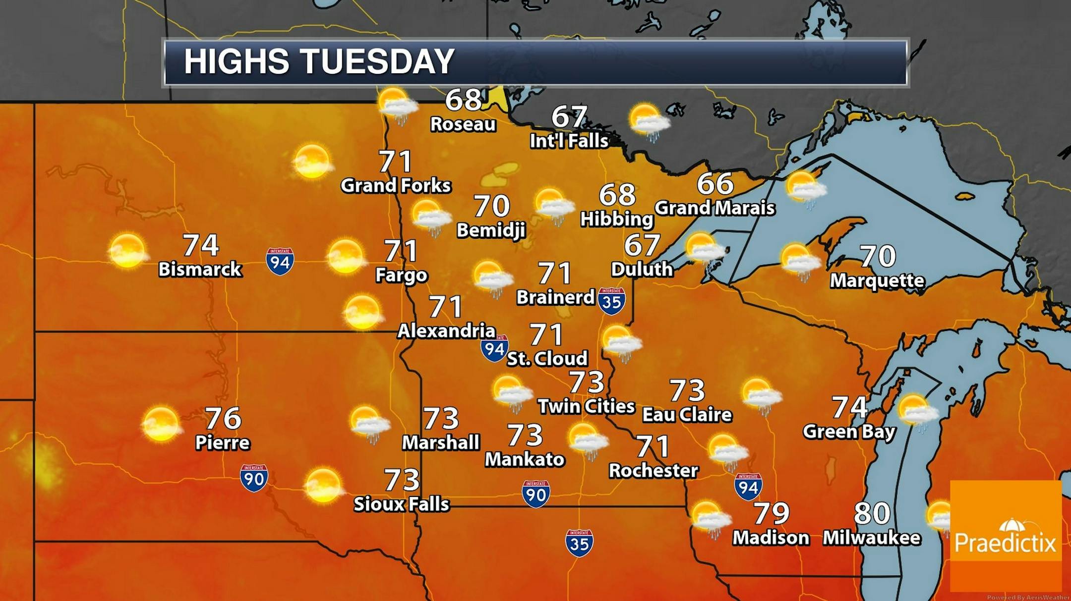 Lukewarm Days Ahead. 70s will be the rule into early next week (close to normal for this time of year), but the mercury may top 80 degrees Friday and Saturday. Any rain will be spotty for the next 5-7 days; no soaking rains are in sight in the near term.