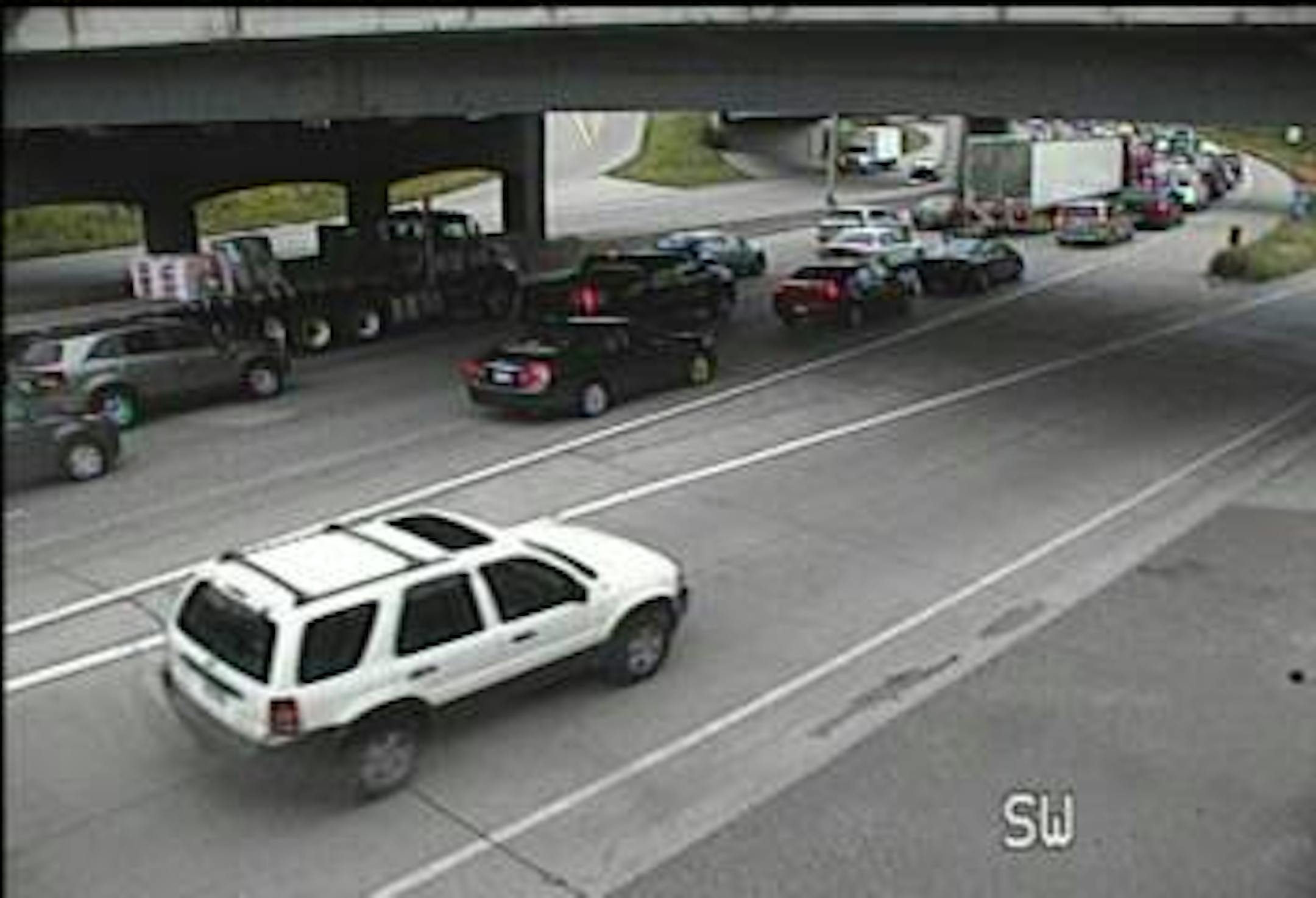 Traffic is stacked up on westbound I-94 from Hwy. 280 over to the Lowry Hill Tunnel, largely due to construction at the I-35W interchange. It's a 10 to 15-minute roll, not bad for the peak of the rush hour.