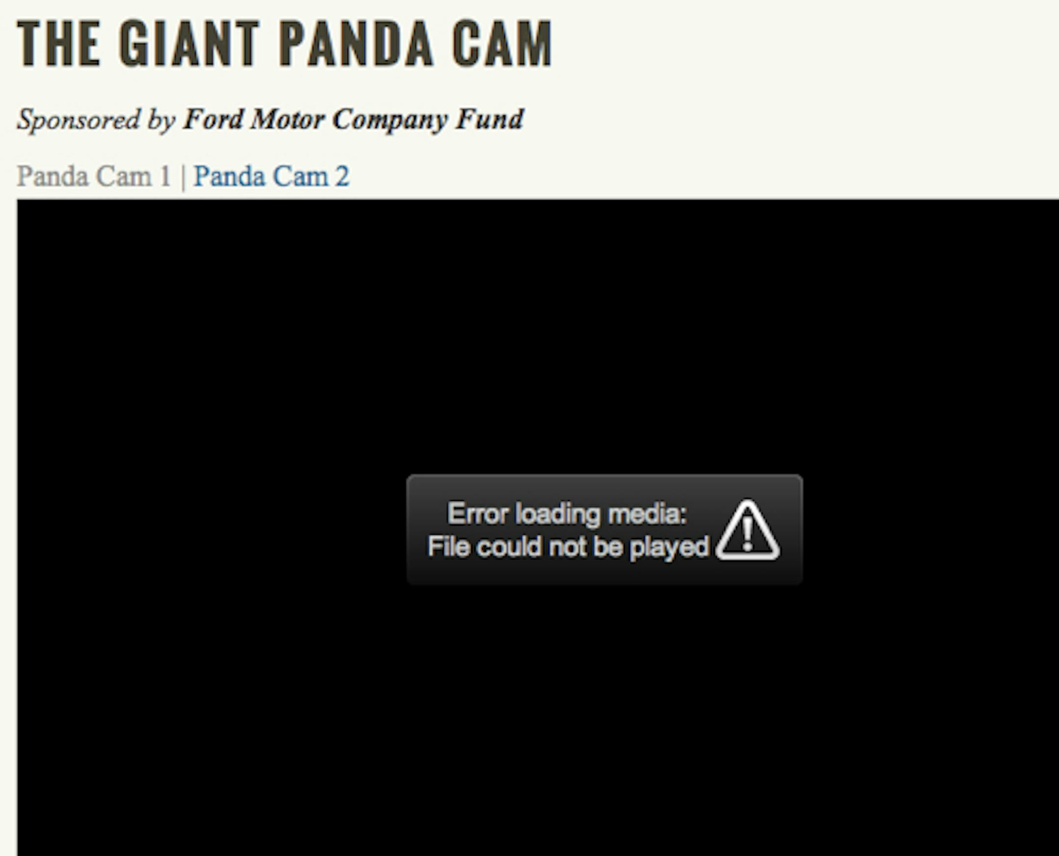 The PandaCam is part of the non-essential government services, and has gone dark while the nation descends into its Hobbesian nightmare. But there's a note on the page: "Sponsored by the Ford Motor Company Fund."