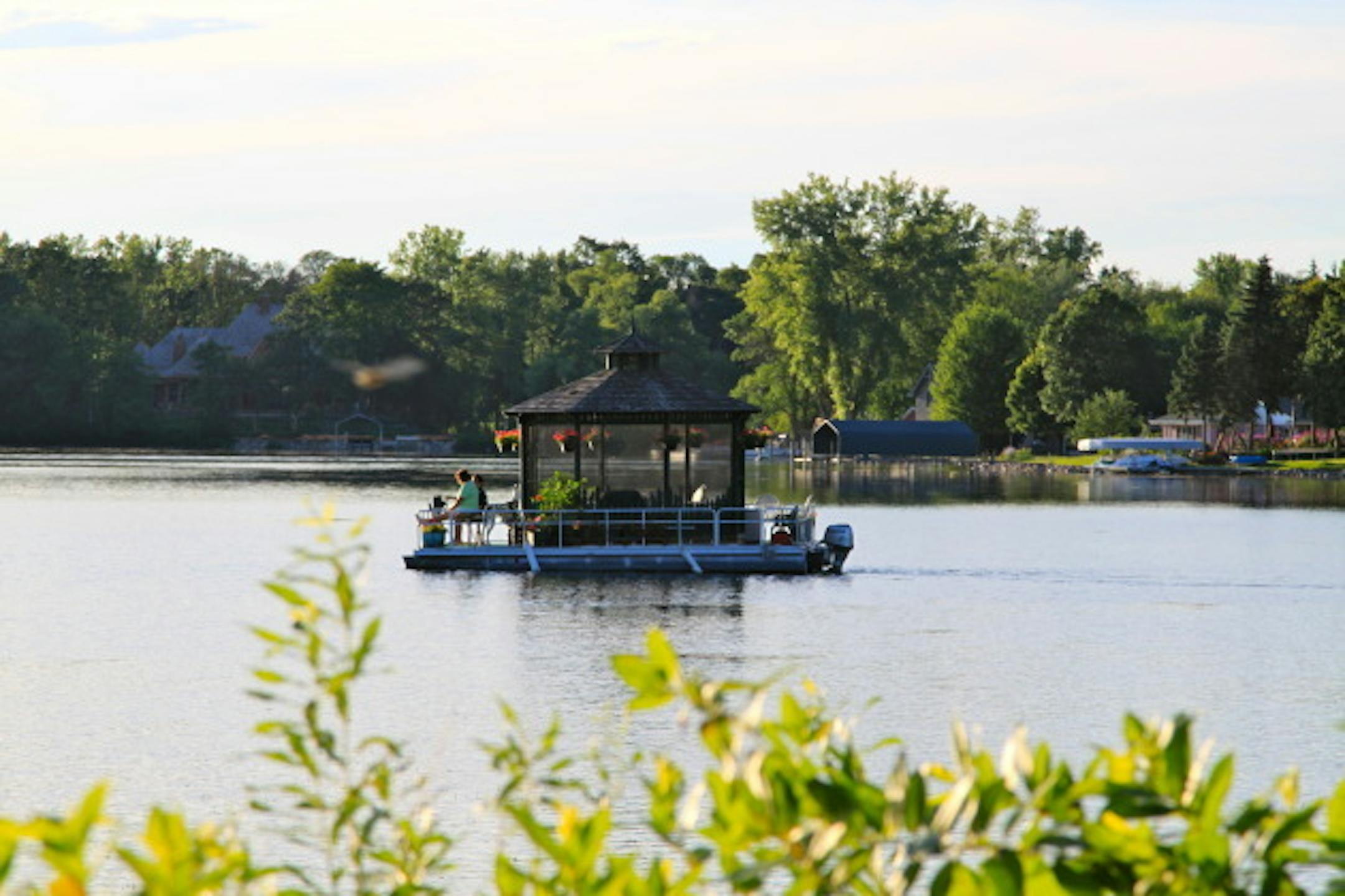 Local legend has it that the city of Minnetonka wouldn't give this homeowner permission to place a gazebo on her tiny lakeside lot, so she outfoxed them with a floating garden structure complete with comfy patio furniture and plants. On many a calm evening, you can see her plying the placid waters of Grays Bay.