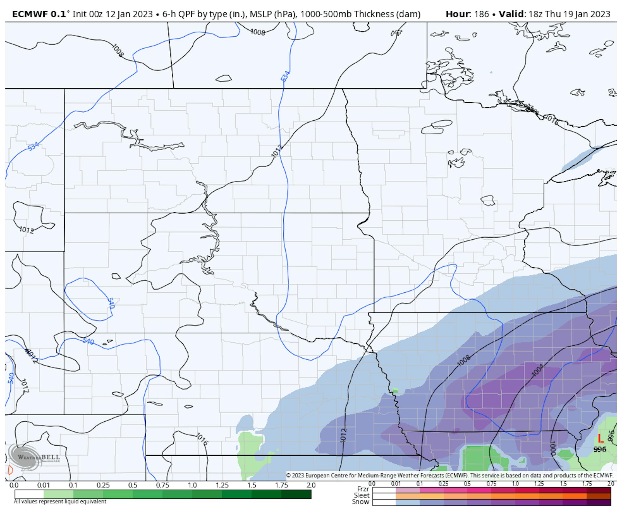 As we head into early next week, our next system looks to impact the region. The bulk of this system looks to pass to our south, which means we would be on the cold side. As shown above, though, highs are expected to be in the mid/upper 30s on Monday in the metro. That means this could be more of a cold rain during the daytime hours (maybe a slight edge of snow on the north side depending on how far north the precipitation makes it into central Minnesota). However, a change over to a little bit of snow would be possible Monday Night and the first half of Tuesday. During that time frame, 1-2" of heavier, wetter snow would be possible.