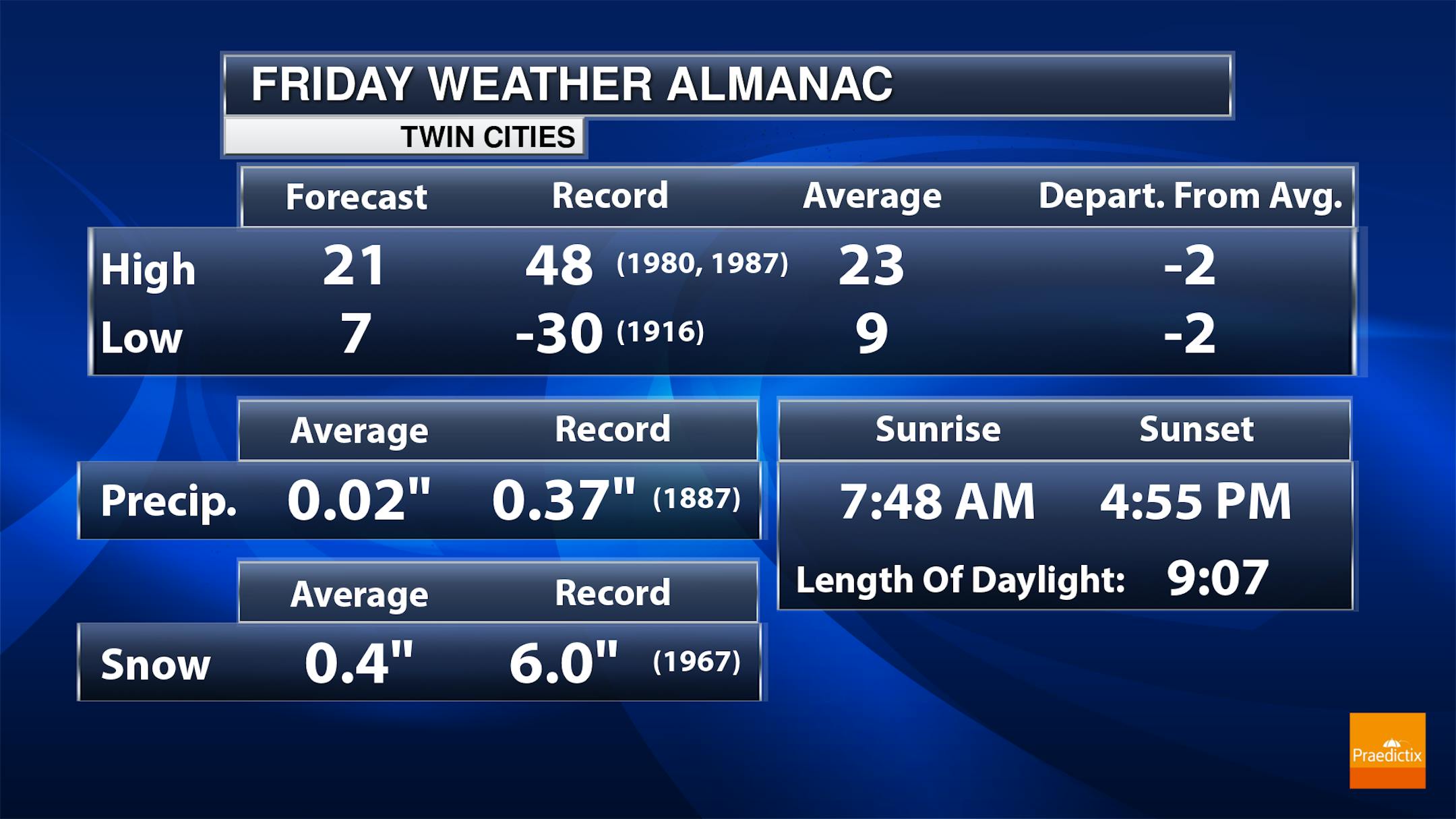 It'll be another chillier day on Friday (even though the high will only be a couple degrees below average) - but it won't be as scary (clouds, poor air quality) as recently as we will see more sunshine. Morning temperatures will be in the upper single digits with highs climbing into the low 20s.