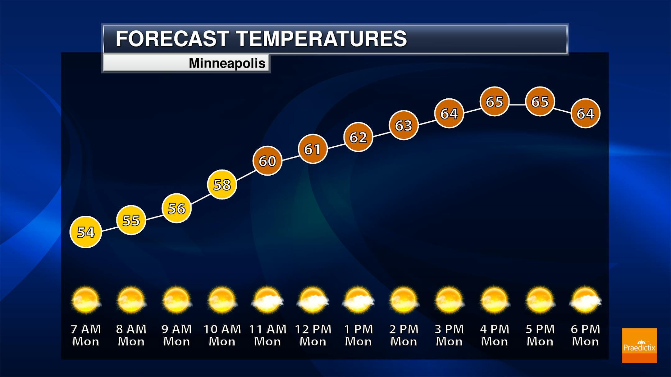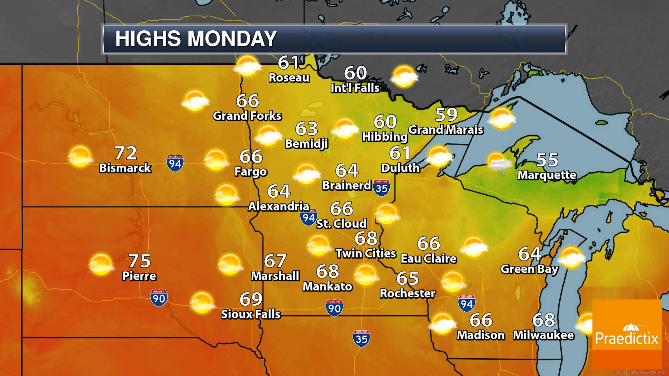 Looking statewide at your Monday, 60s are expected for highs in most locations - 10F to 15F degrees below average - with a mix of sun and clouds.