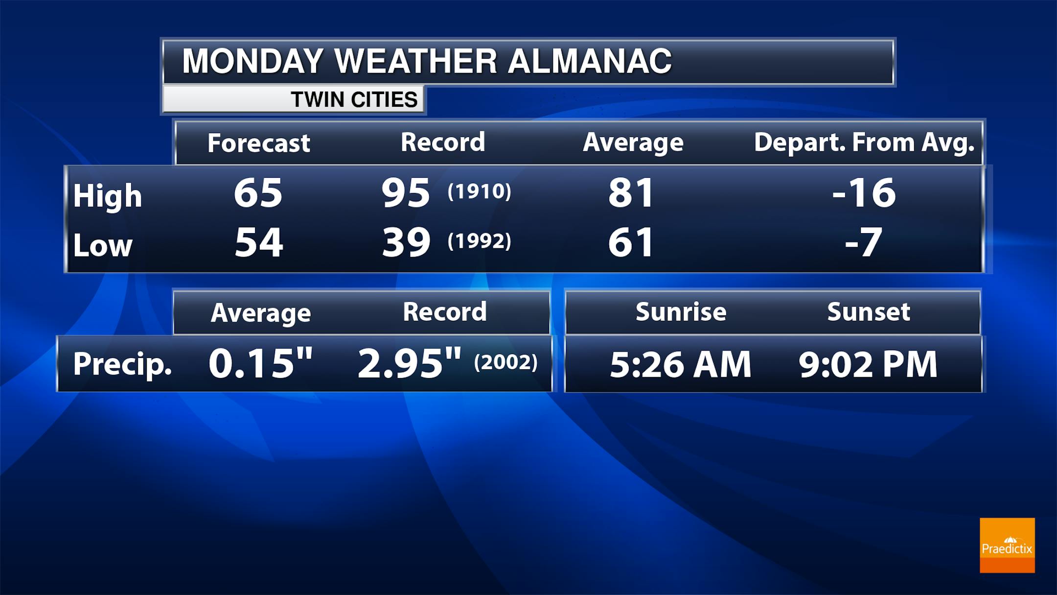 Definitely take the opportunity to turn off the air conditioner Monday as it will be the coolest day of June with highs only topping off in the upper 60s in the Twin Cities under a mix of sun and clouds.