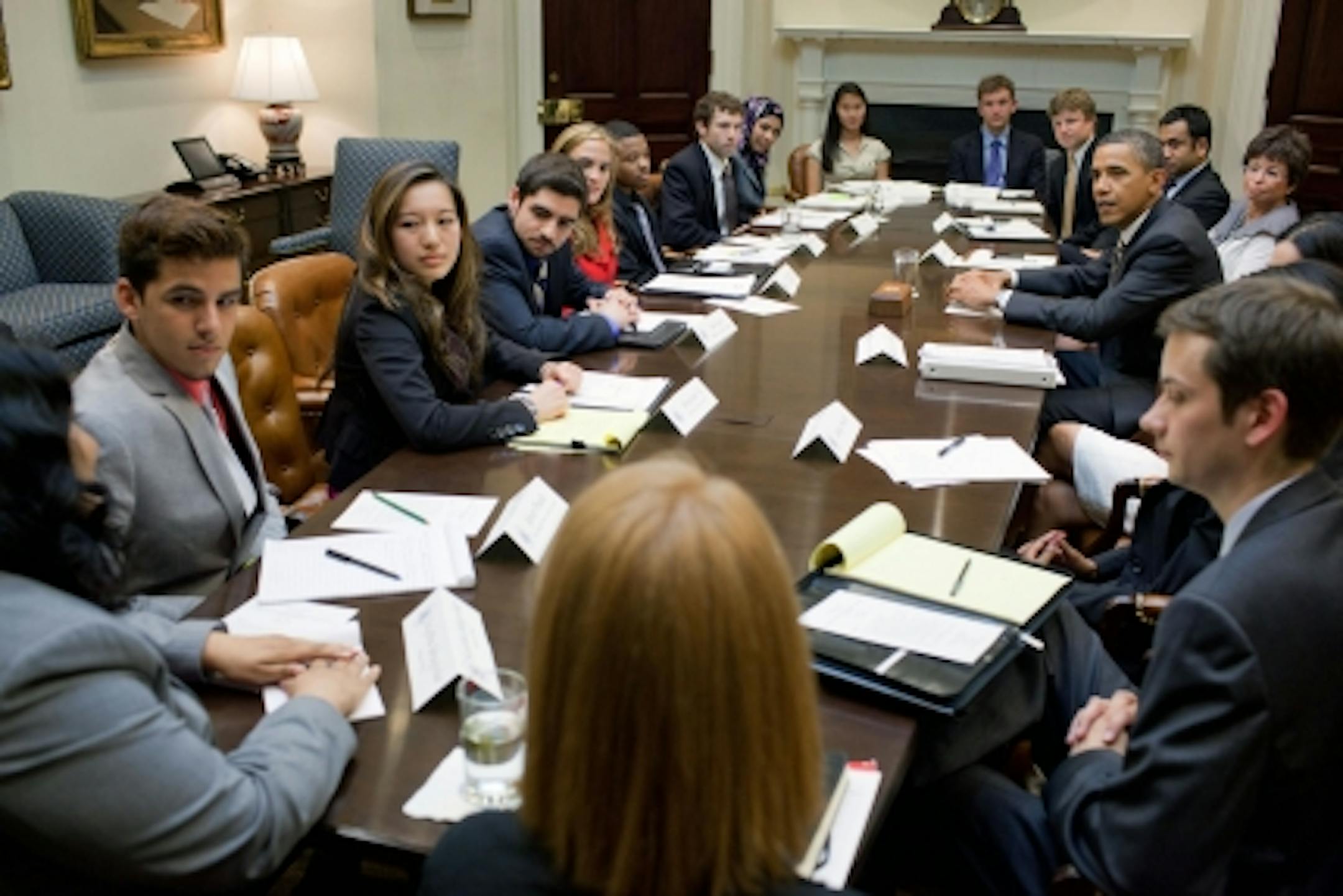 Lee said it wasn't clear whether the president would sit in on any of the discussion on youth issues. But then a door opened and the Obama's dog, Bo, entered the room and circled around the table. The president then talked with the group about a new "How to Make Change" initiative to respond to the concerns and dilemmas of today's youth.