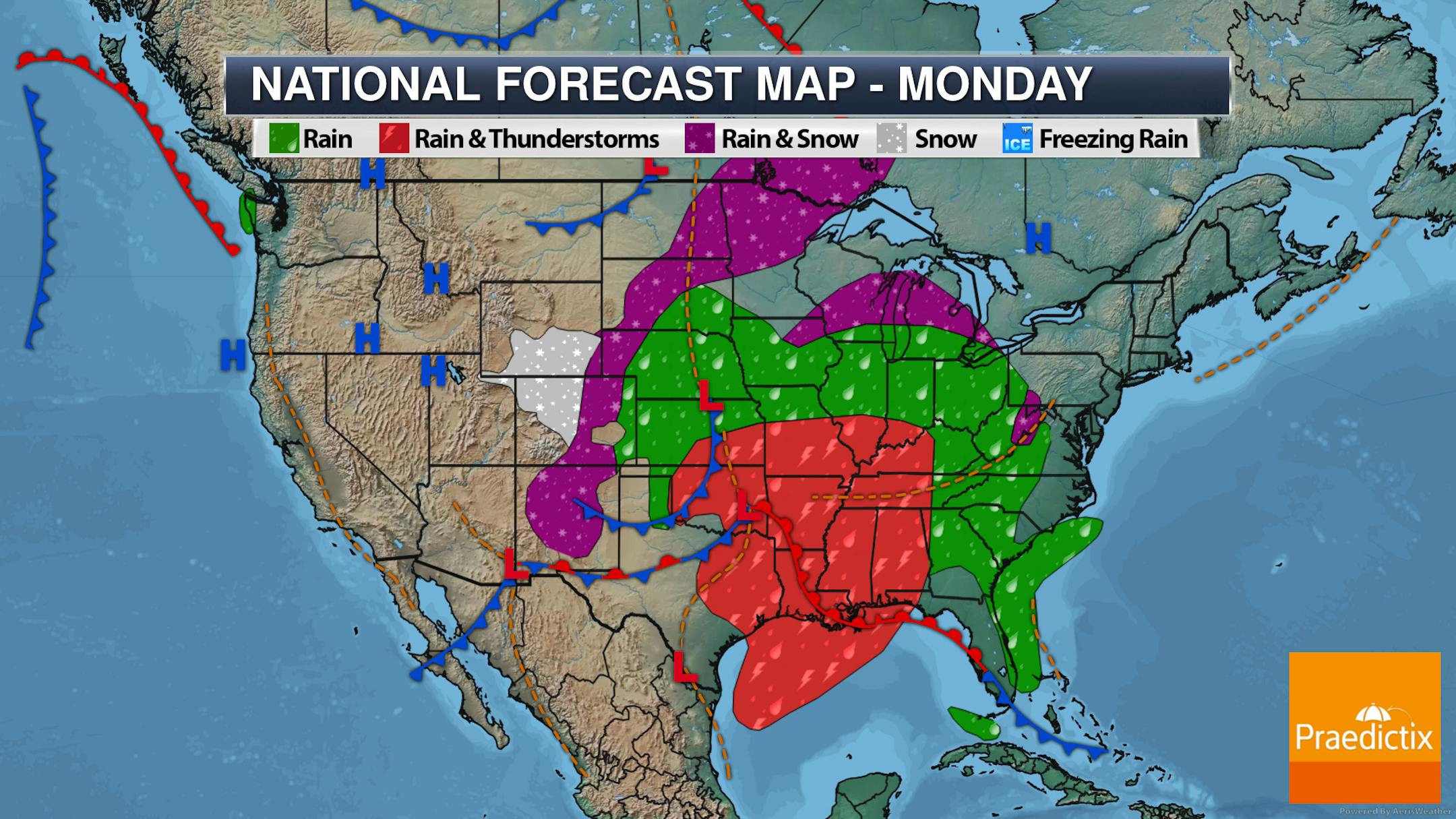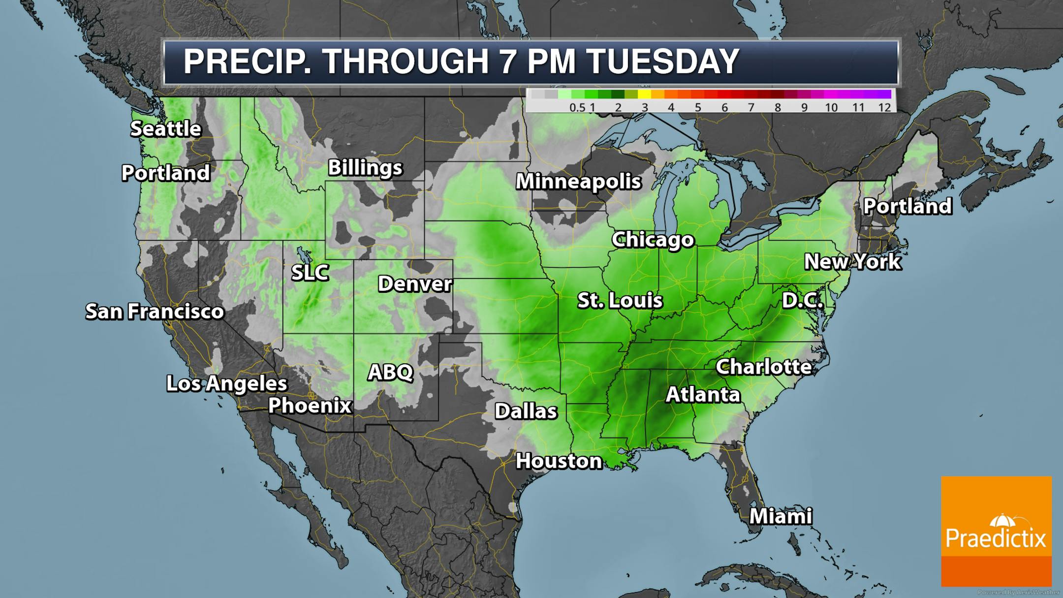 Forecast loop between Midnight Sunday Night and 7 AM Tuesday.