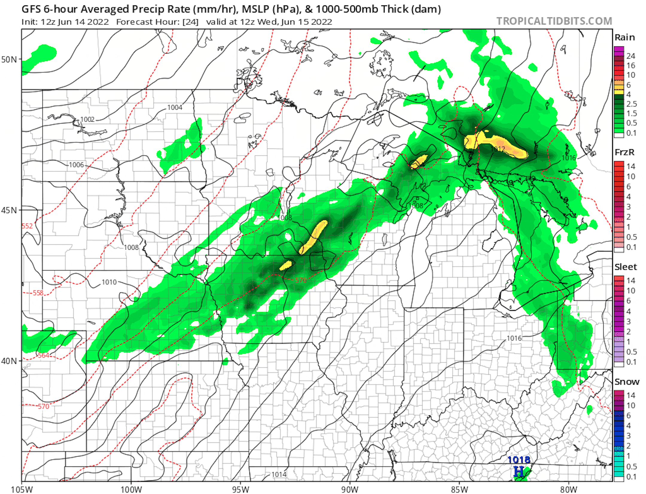Here's the rainfall potential through PM Sunday. Showers and storms will be possible south and east of the Twin Cities Tuesday night into Wednesday with some spots seeing nearly 1" of rain, especially in the far southeast corner of the state and into central Wisconsin.