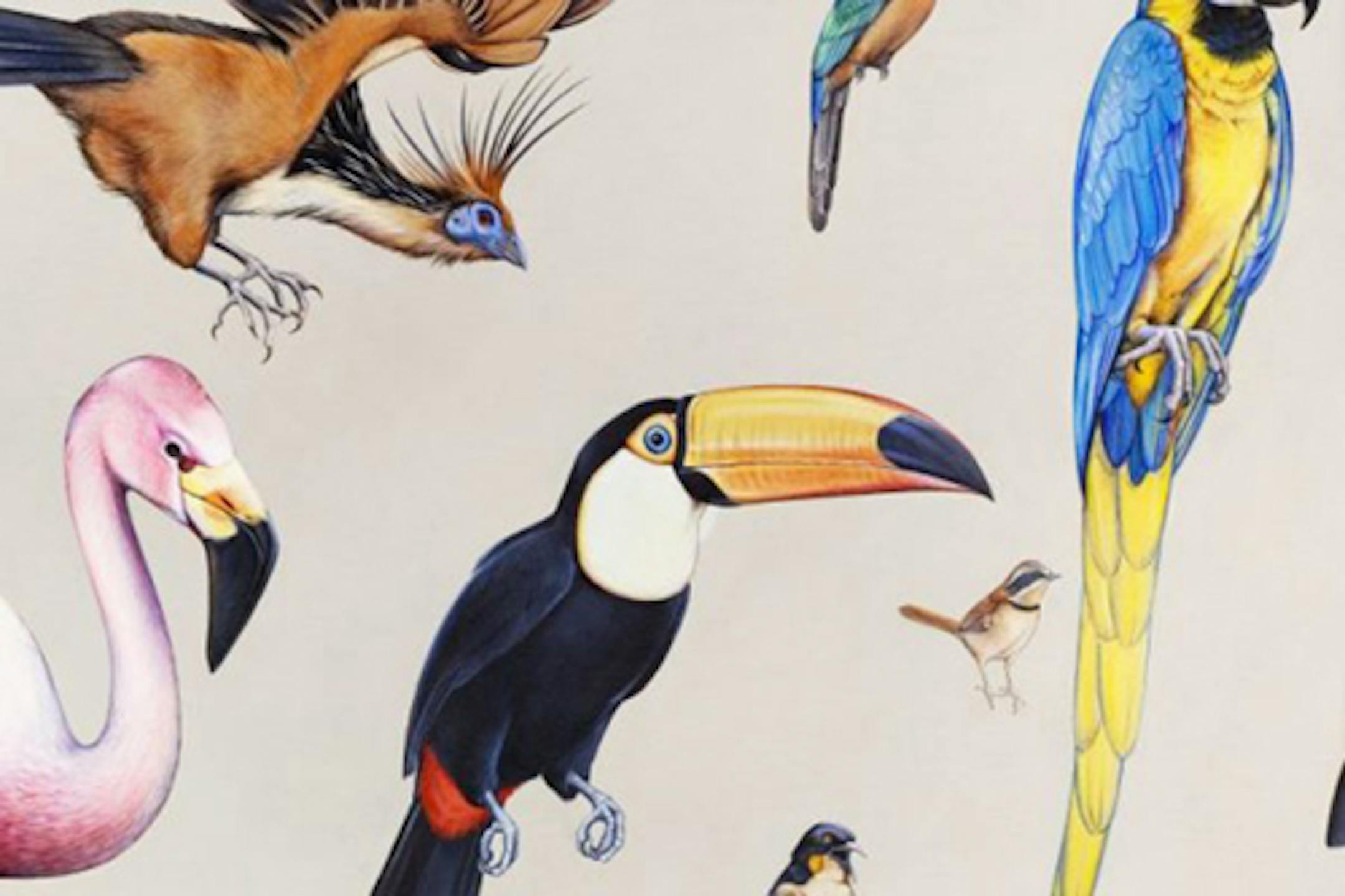 She was up there for three years, painting one bird species from each of 243 bird families covering 375 million years.