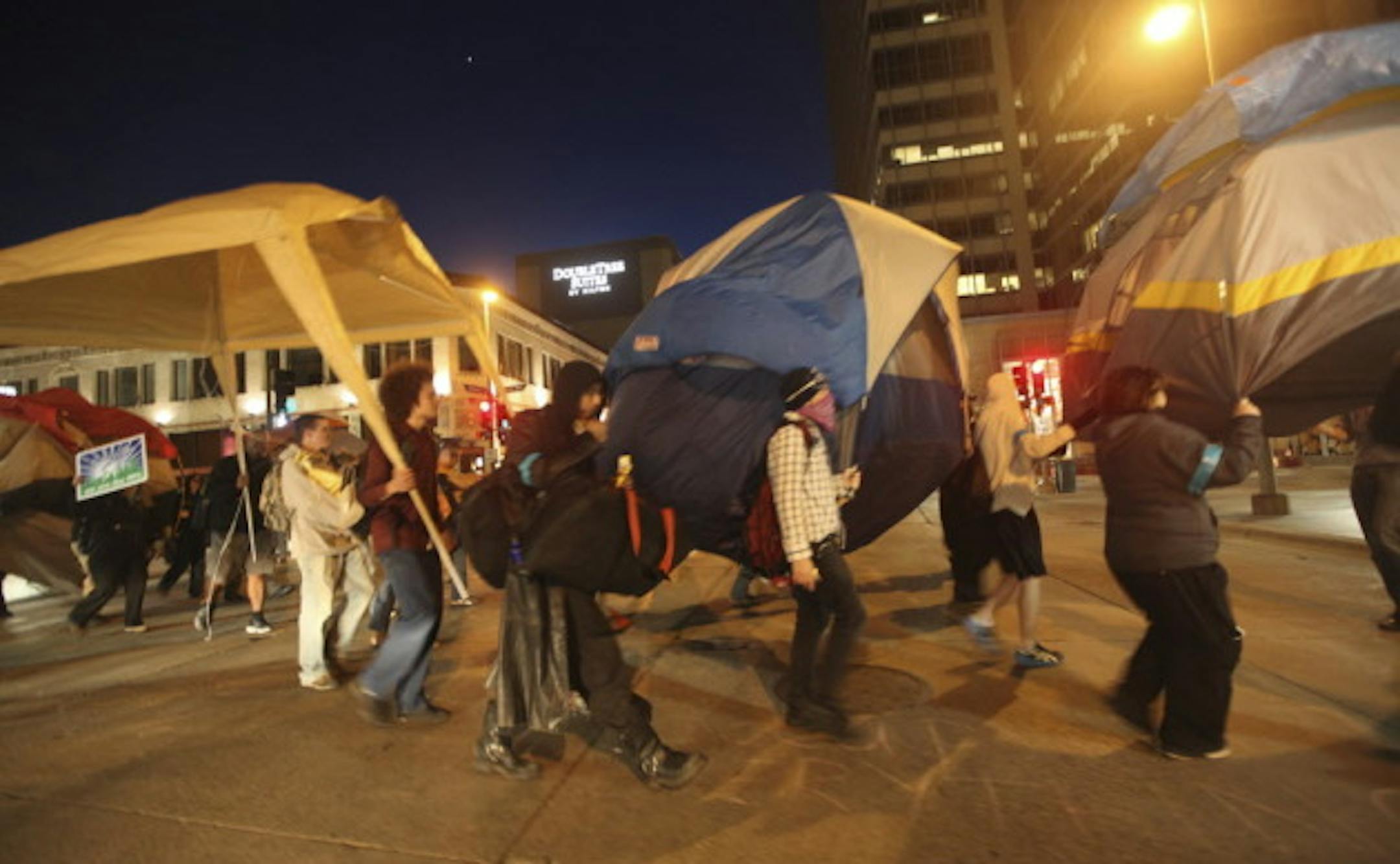 That follows -- and appears to be in direct response to -- Occupy Minnesota's recent clash with police over whether they could pitch tents in Peavey Plaza on Nicollet Mall. Occupiers were eventually arrested after leaving the plaza and blocking traffic on the Mall.