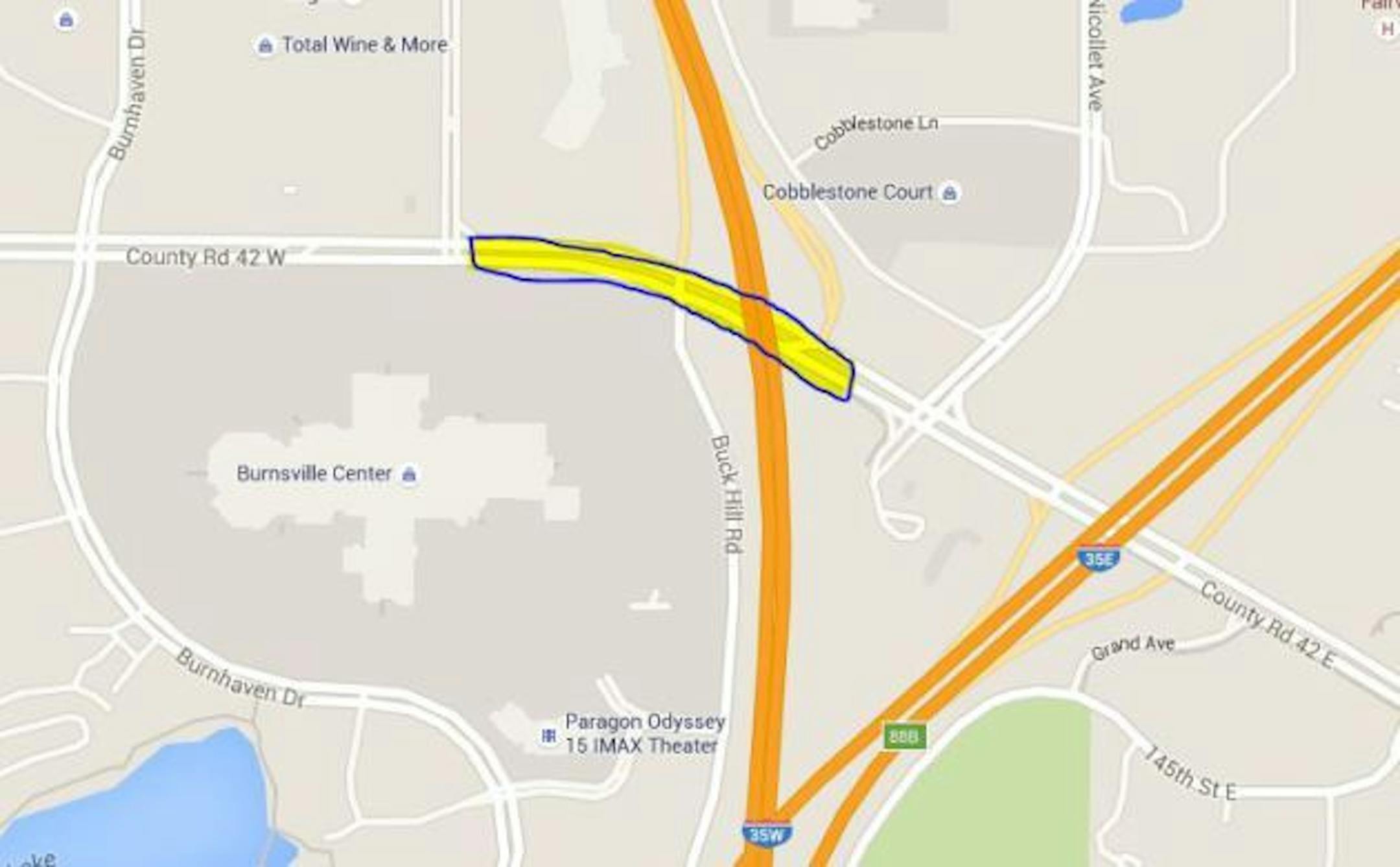And that will bring significant traffic snarls for up to eight weeks in an area already prone to bottlenecks. More than 50,000 vehicles cross the County 42 bridge over I-35W each day. The road also is the main access point for those heading to Burnsville Center and the shopping centers across the street.