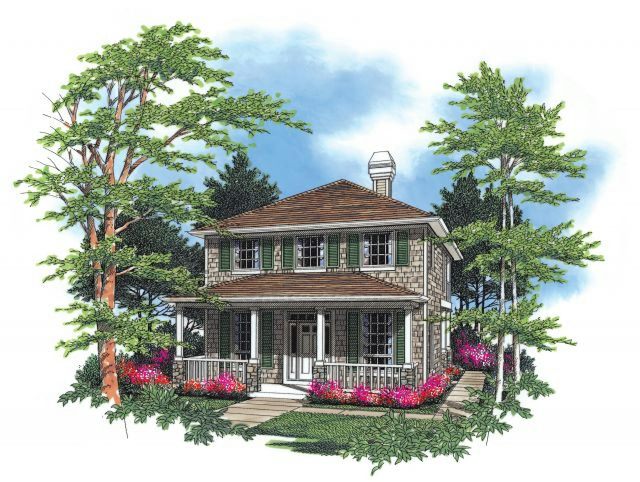 Although this Craftsman-style foursquare may have a traditional exterior, the interior boasts a thoroughly modern open floor plan with a two-story great room and dining room. A fireplace and built-in media center create a focal point and plant shelves define and decorate overhead space. The sink peninsula in the efficient U-shaped kitchen includes base cabinets only, which allows the kitchen to open to surrounding rooms. On the second floor, three bedrooms and two bathrooms flow off a central hall. The master suite is designed with angled walls, a walk-in closet and a bathroom with a double vanity and private balcony. With its narrow design and rear-facing garage, this plan would be suitable for an established neighborhood with back-alley access. LYNN UNDERWOOD