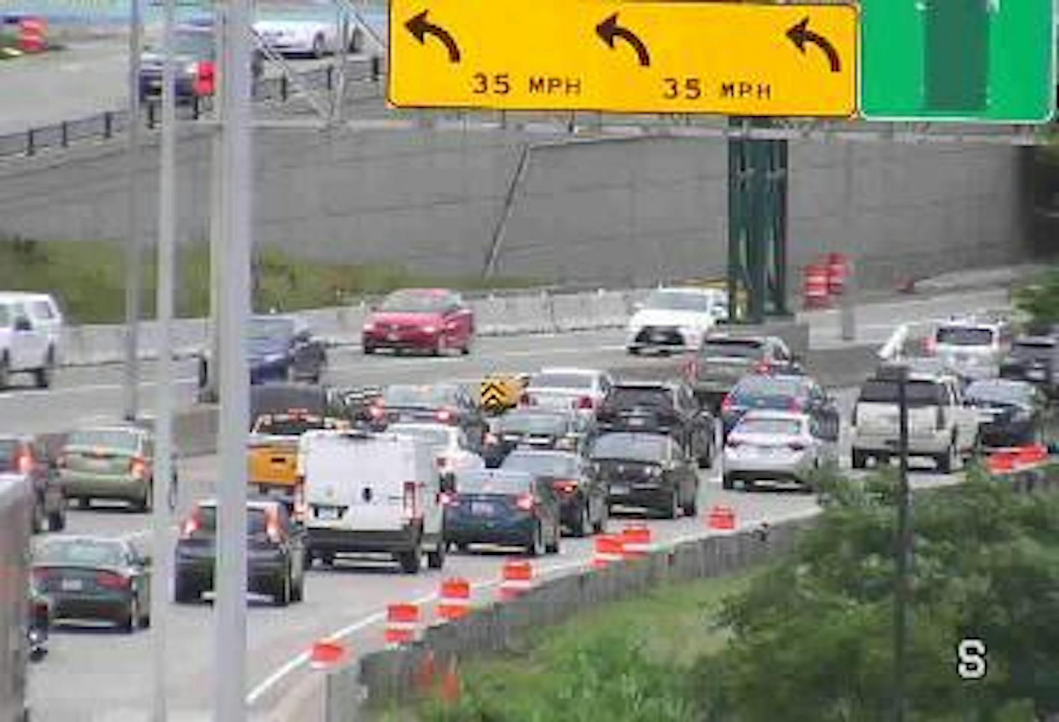 The daily congestion is in place on westbound I-94 in downtown Minneapolis. Plan on 15 minutes from Hwy. 280 over to the Lowry Hill Tunnel.