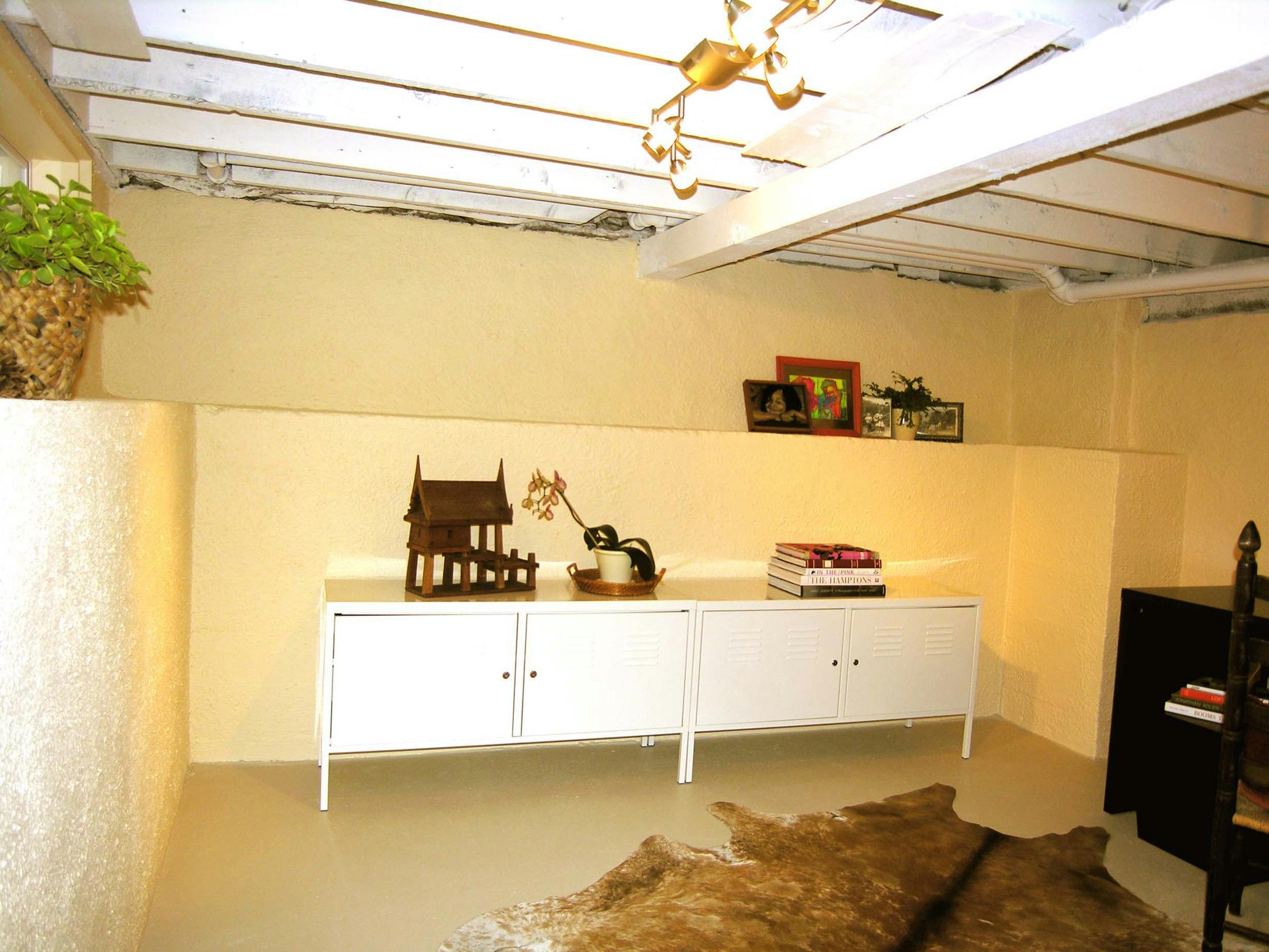 The cement floors, slab walls and exposed beams in this "dungeon" made it difficult to imagine any use for this space.