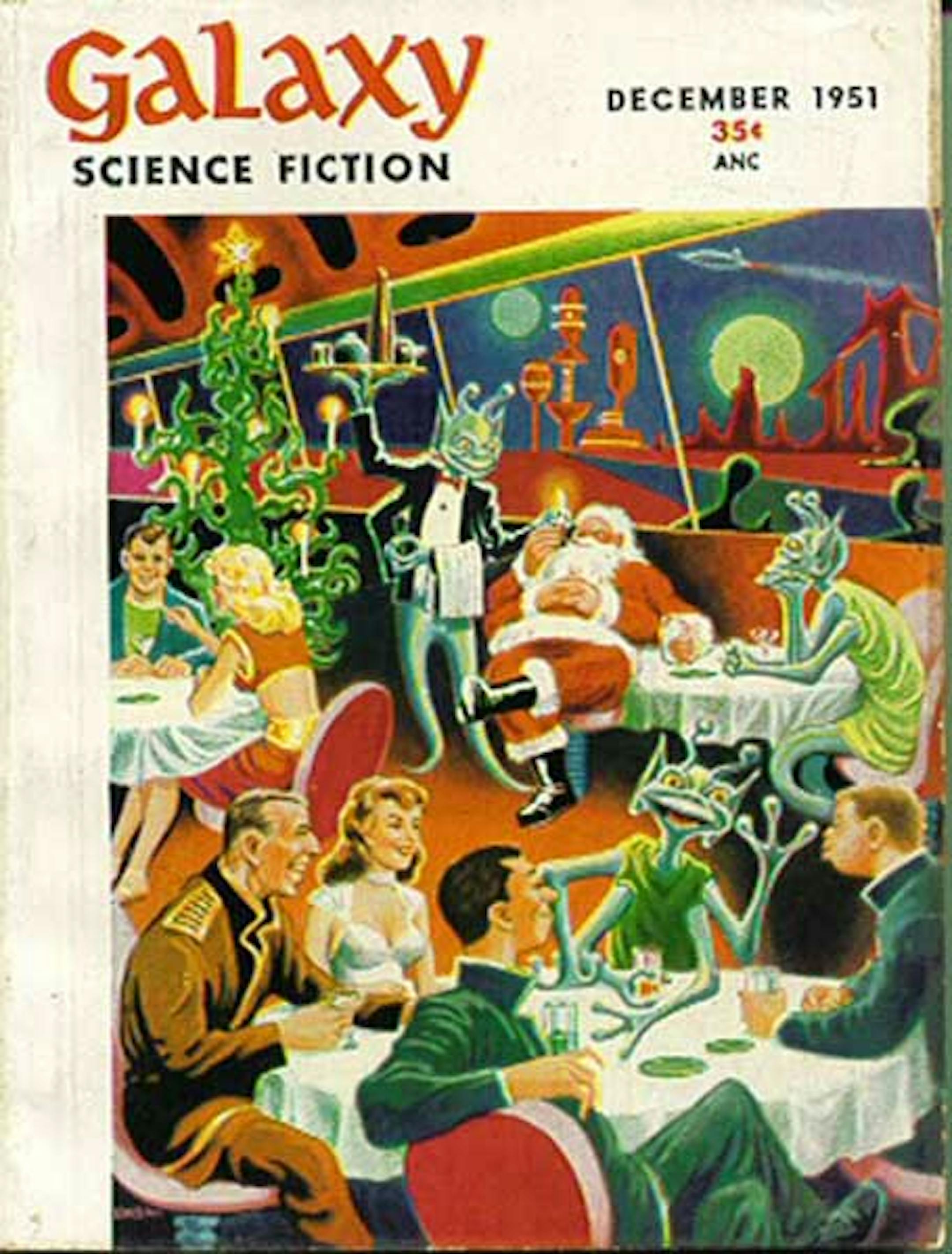 I had planned to put up a collection of Four-Armed Santas today, but this fellow did it already. I got the illustrations from the archive.org Old Time Radio archive of "X Minus One," and thought they'd be apt Xmas fodder.