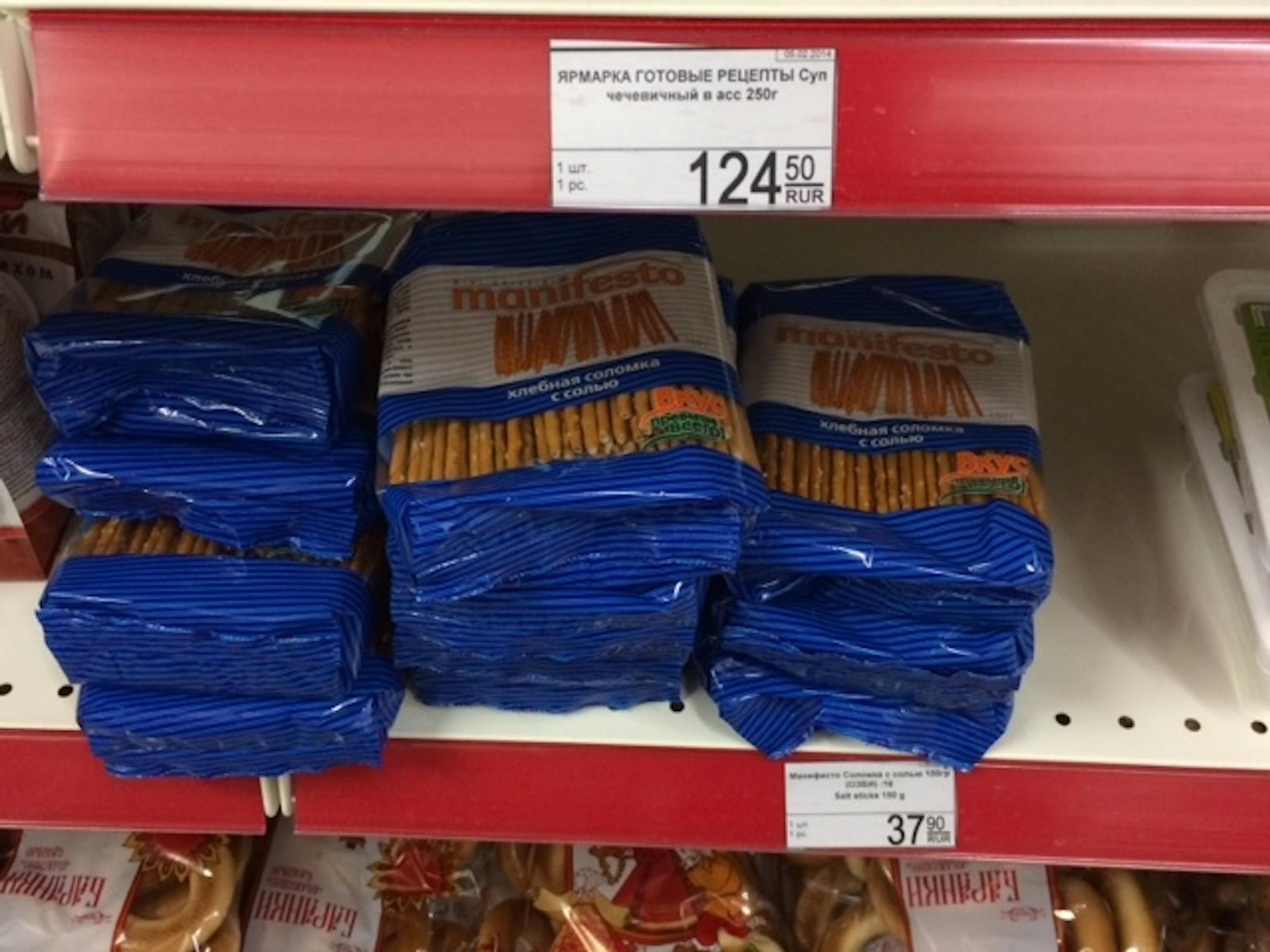 --You and I know these as pretzels. The shelf tag calls them "salt sticks."