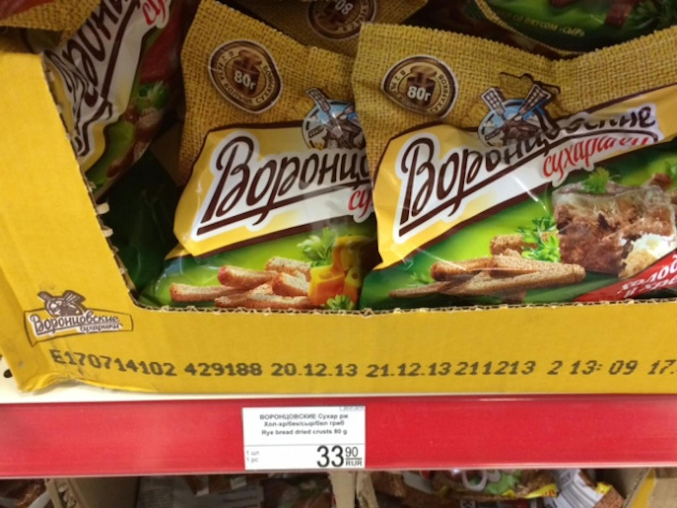 --This is some kind of snack food called "rye bread dried crusts." They also carried "dried crusts with raisins" and just plain "dried crusts." I was hoping for a variety pack but didn't see one.