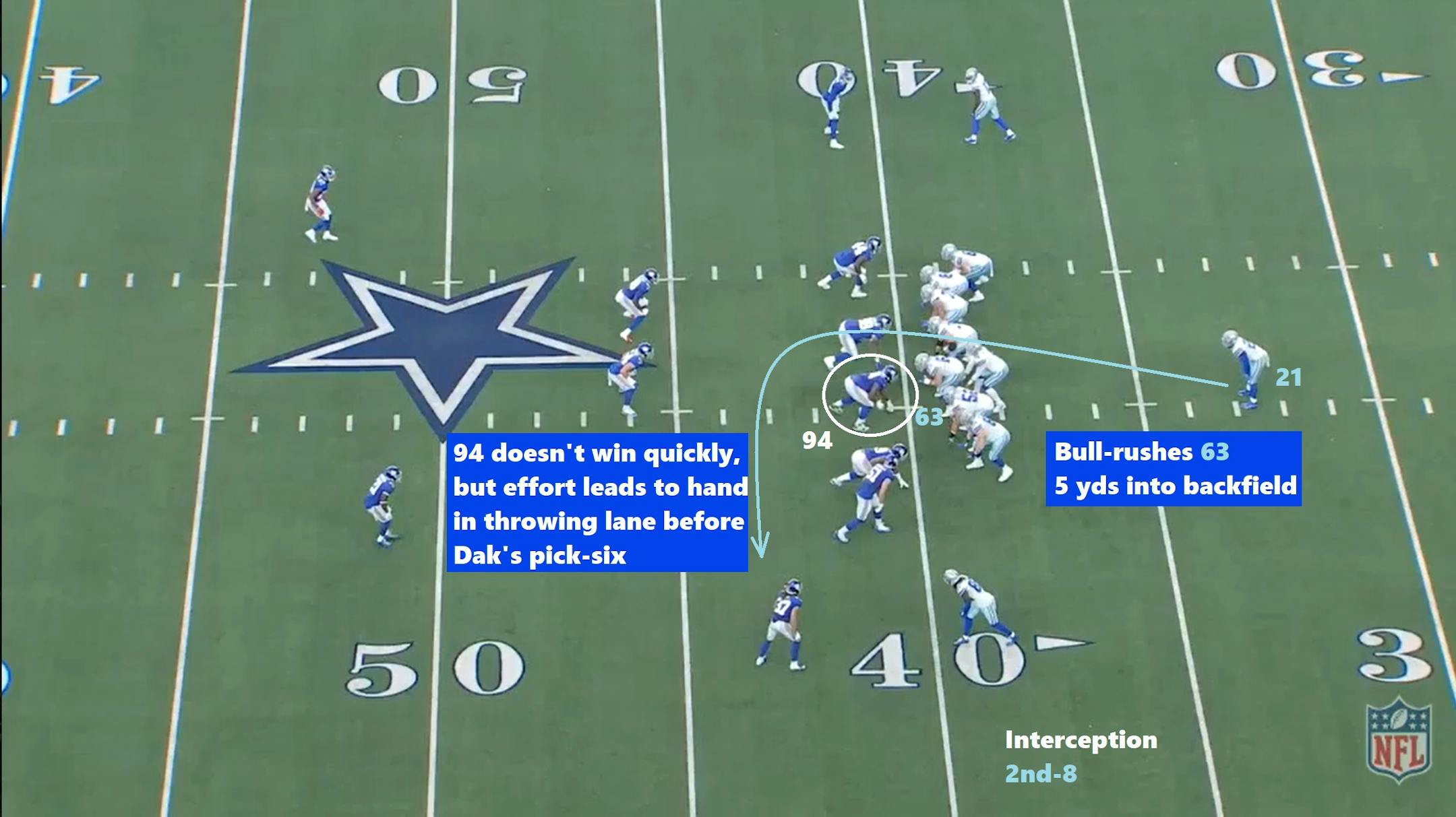 In this Week 3 game between the Giants and 49ers, Tomlinson lines up outside the shoulder of the guard on this play, where he'll primarily be in Minnesota. He's not known for a super quick get-off or speed, but he's got some burst to go with the bull rushes.