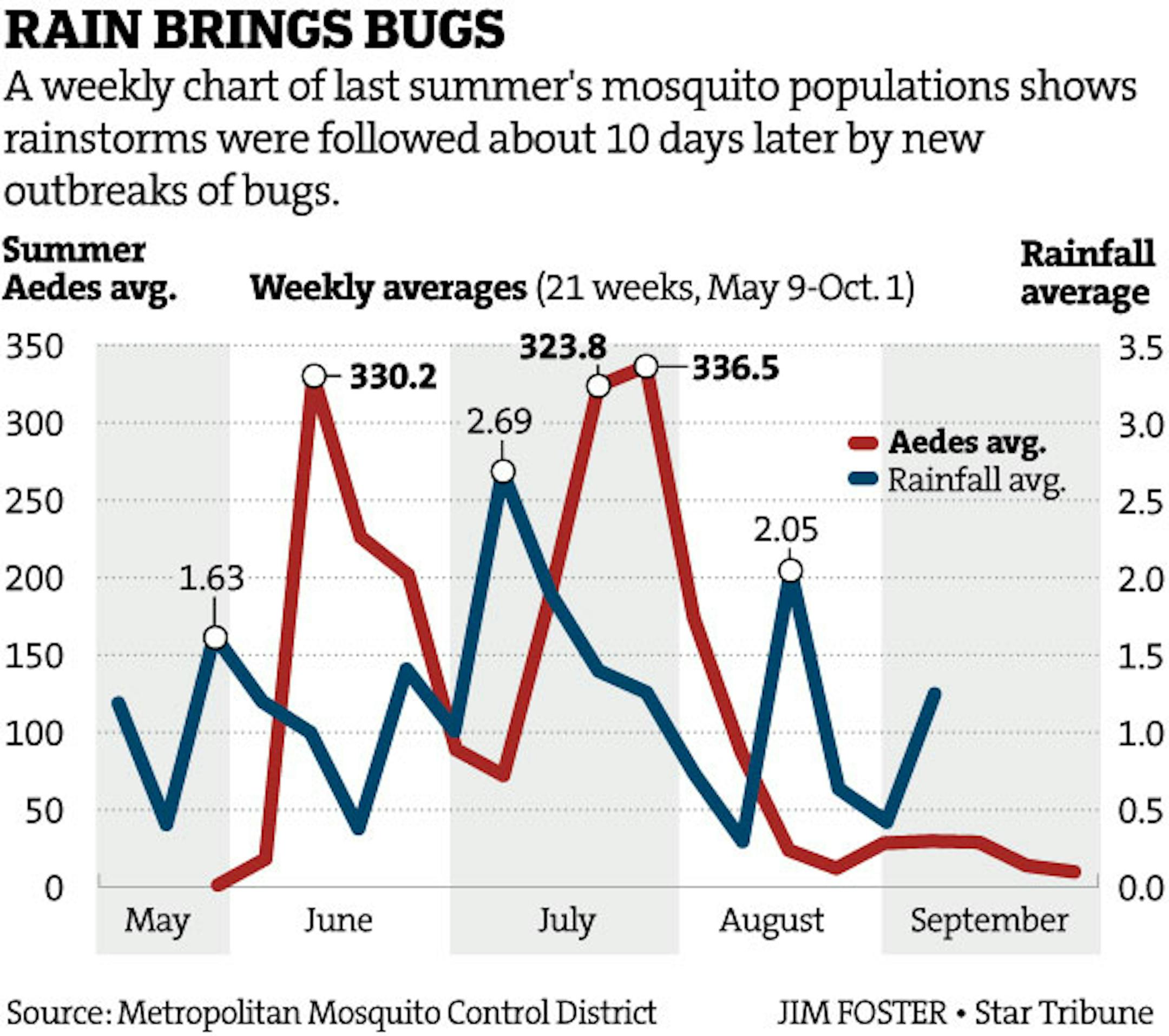 That's the latest buzz from the experts at the Metropolitan Mosquito Control District, a government agency that tracks the number of mosquitoes across the seven-county metro.