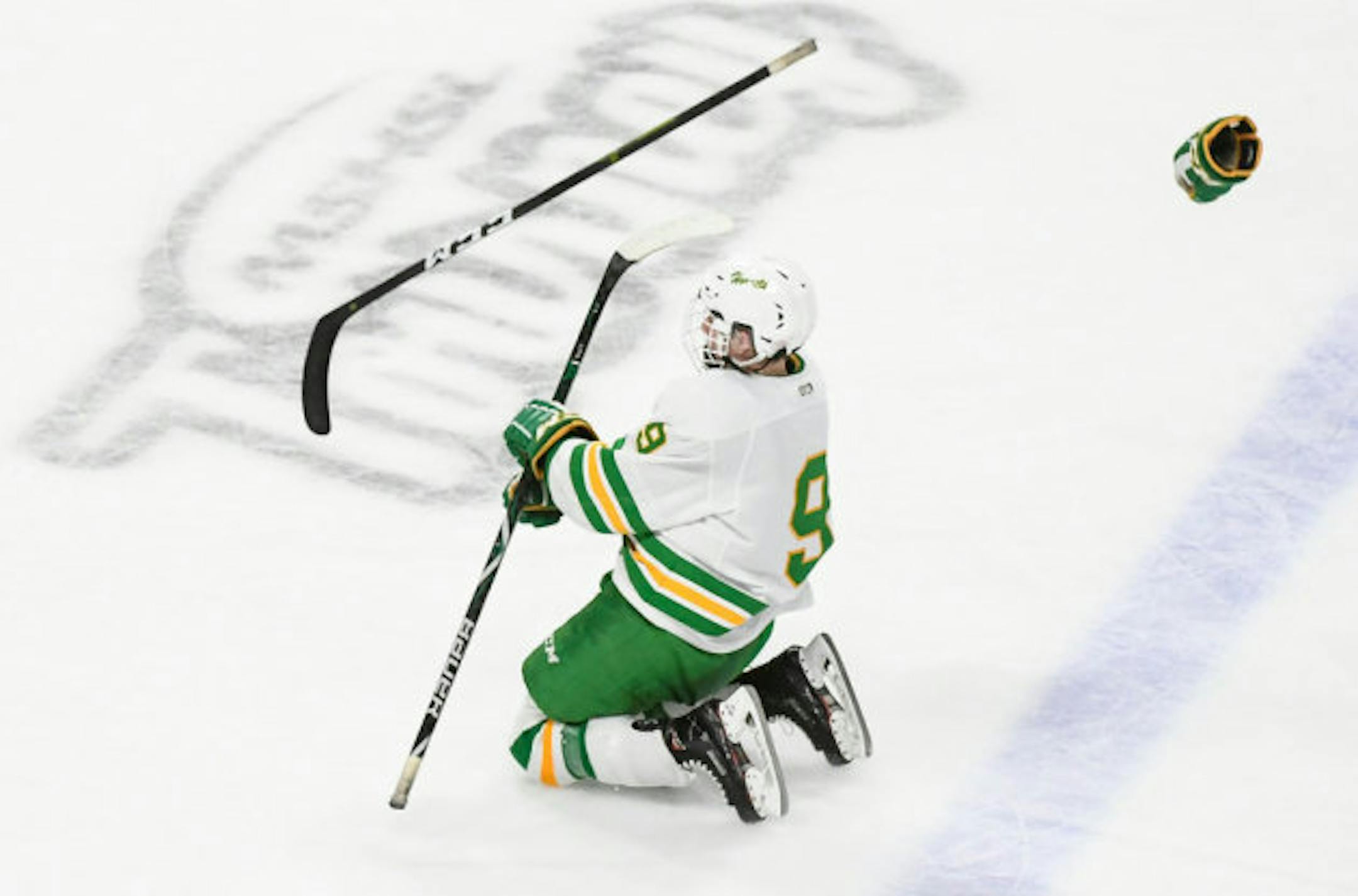 The kid with the permanent smile completed his Everest-like climb from the depths of Edina's massive youth system (he played Junior Gold B as a freshman) by scoring a goal and adding an assist in the third period.