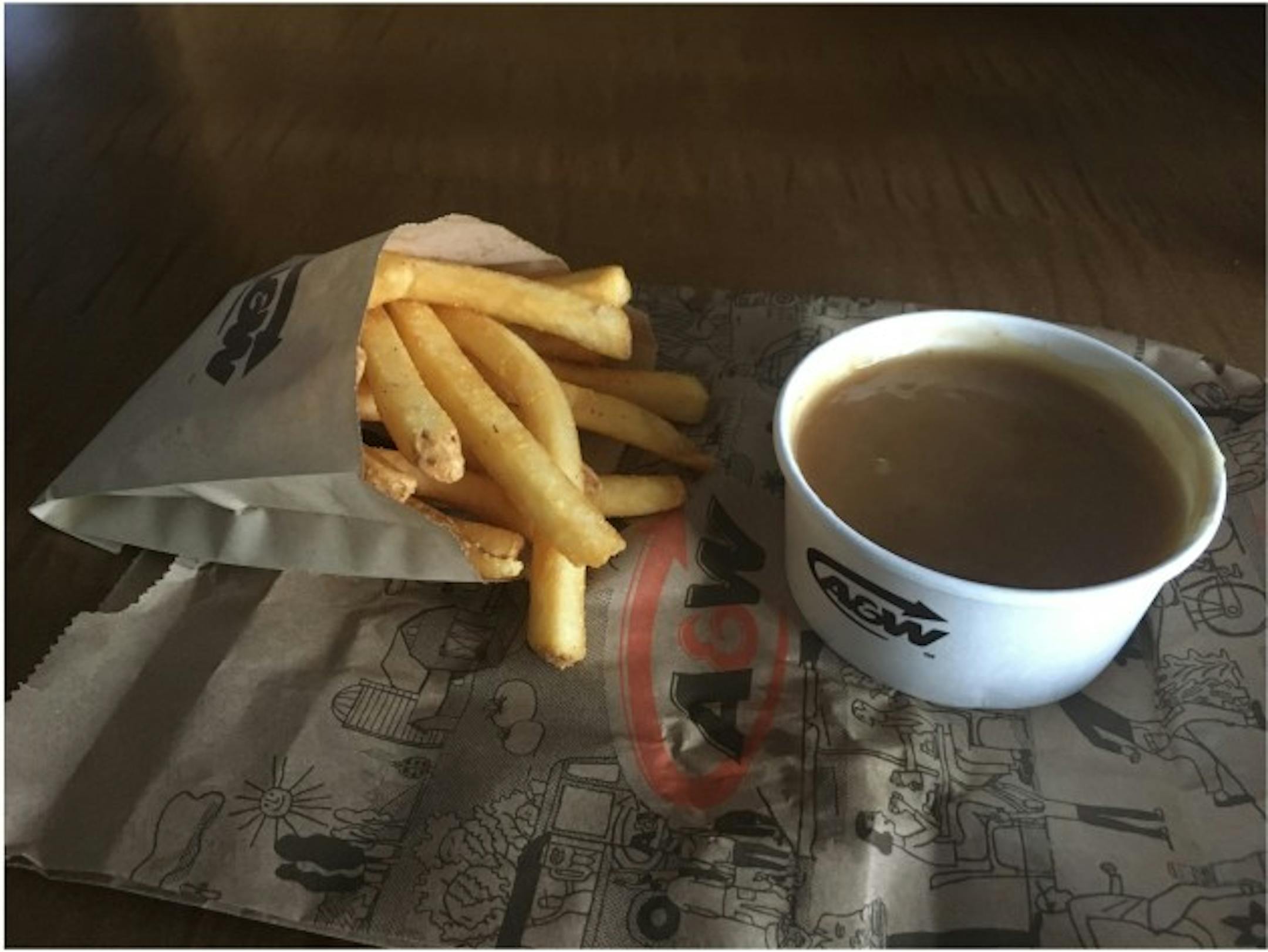 At some point in time, I started mixing in ketchup with my fries and gravy. Did you teach me to do that? Anyway, that how I prefer to eat fries if I get gravy on the side. I didn't get ketchup with my order last night but if I did, I would have mixed it all together like I did as a kid.