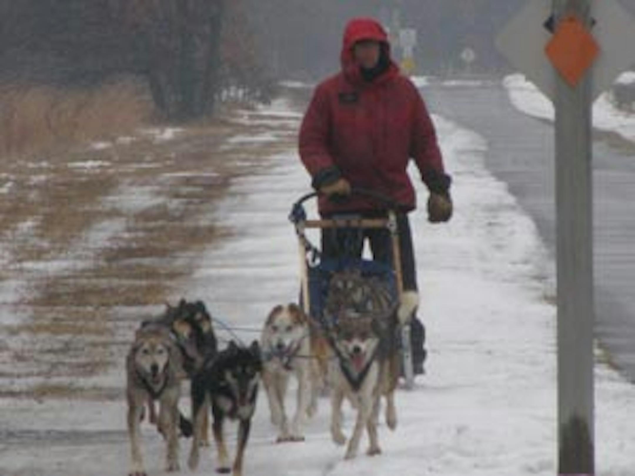 "It is really hard to believe that tomorrow morning we will come pulling up to the steps of the state capitol. We've covered well over 300 miles thus far, and the dogs are running like they are just starting to get warmed up. Today was a shorter day, but also one of our more difficult on the trail. While our early days running through the woods up north provided us with an abundance of snow, yesterday's near 60 degree temperatures have left our patches of snow few and far between. And now that we are in the metro area, the trails themselves are becoming more and more interesting. Today in Forest Lake we had to traverse a shopping mall parking lot. It was a new experience for all of us.