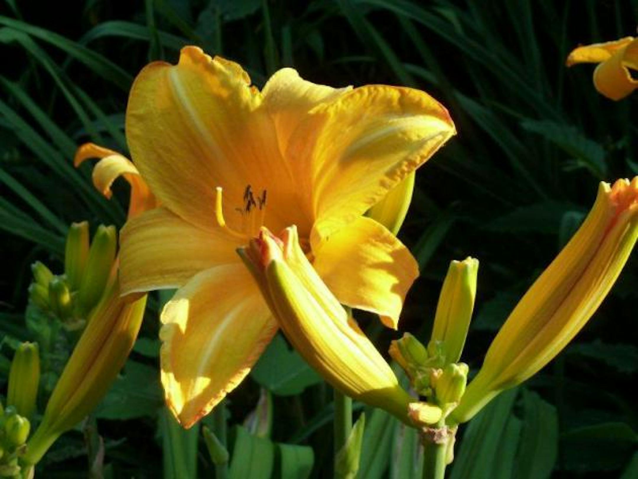 Plant breeders have played around with daylily genetics, and you can get diploids and tetraploids that have extra chromosomes and bigger, heavier flowers. While I have some fancy daylilies — flowers with different colored "eyes," frilly petals and double petals, the old-fashioned plants are the ones I like best. Tall, graceful "Hyperion," an old-fashioned yellow, seems like garden royalty to me. Gentle peachy "Annie Welch" is another favorite, as are some deep dark reds whose names I have forgotten. And you can't ignore the hot lava orange of "Mauna Loa."