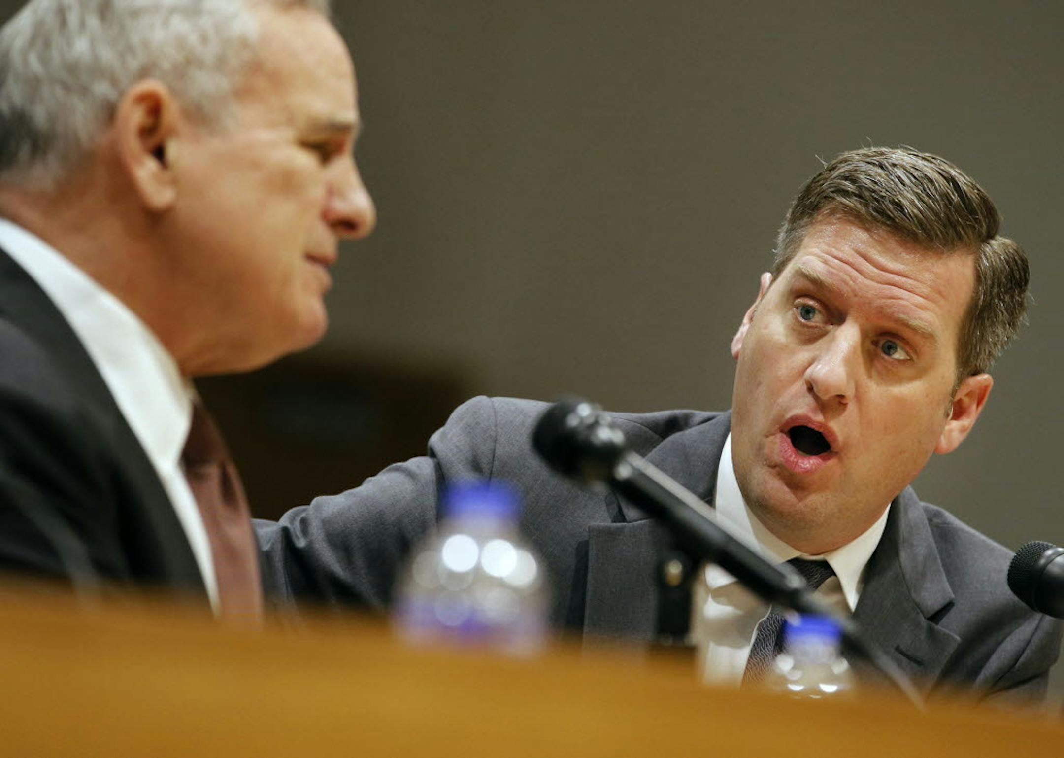 DFL Gov. Mark Dayton and Republican legislative leaders clashed on long-running disagreements on education and transportation during a Thursday preview of the session.