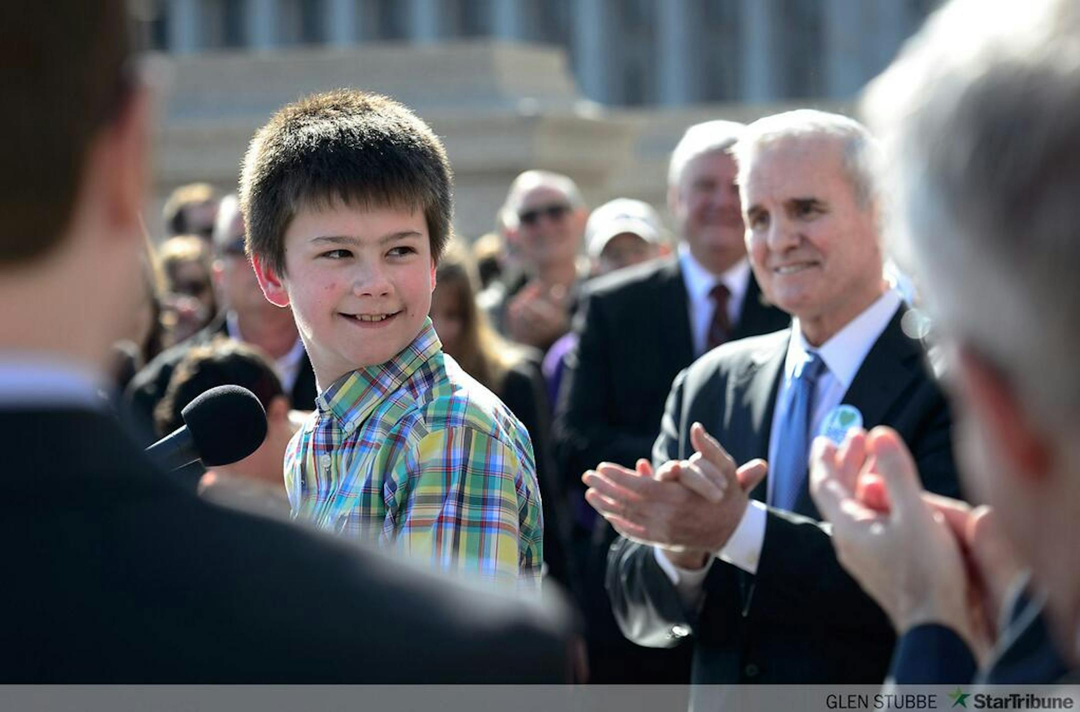 On the steps of the Minnesota Capitol in the breezy spring sunshine, DFL Gov. Mark Dayton signed into law a measure that he said would make clear that bullying "just can't happen in Minnesota."