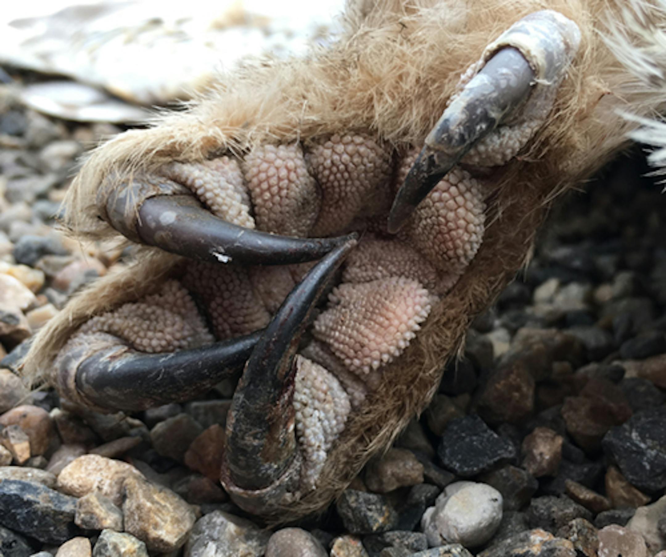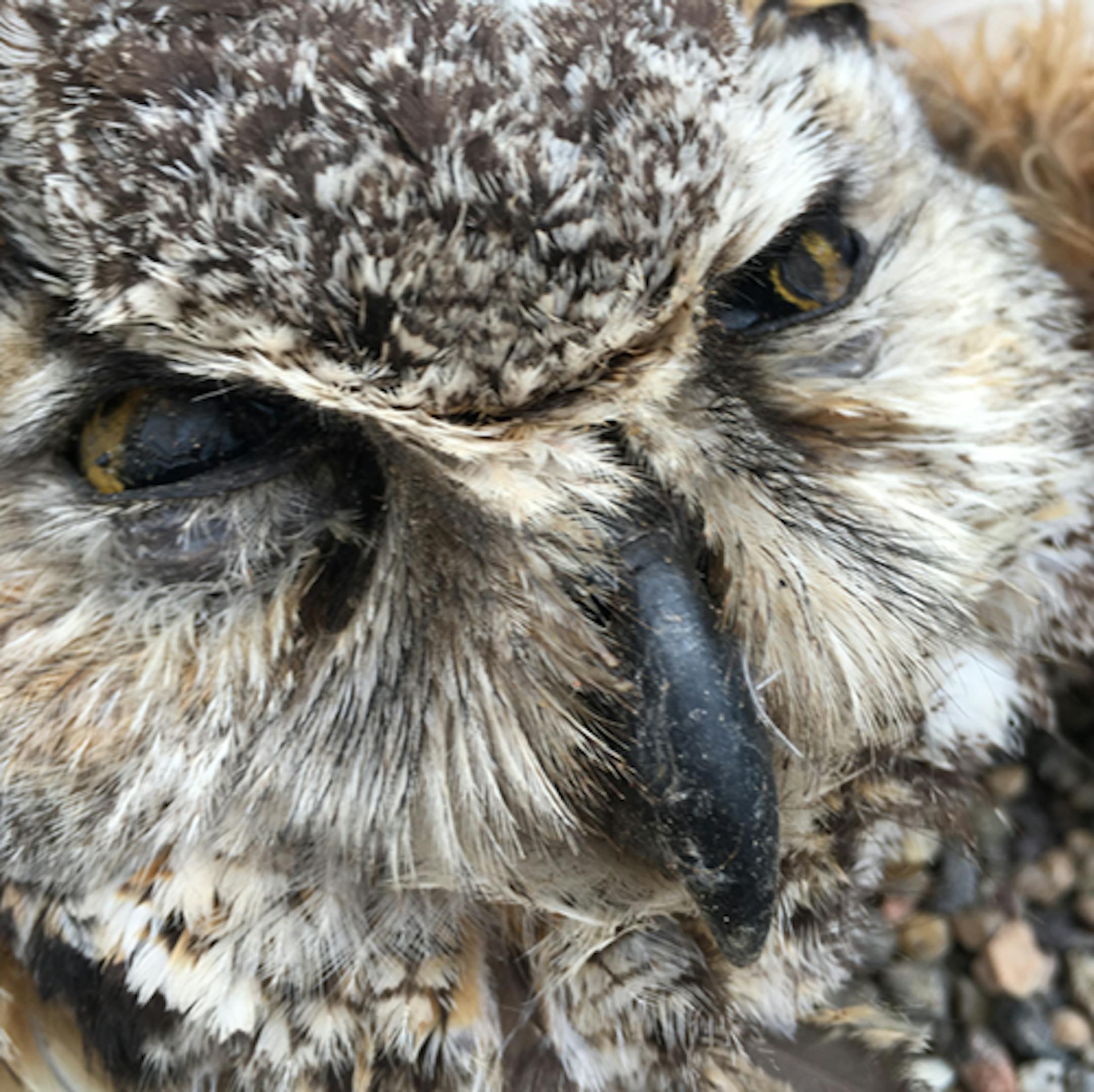 This is the face of a dead Great Horned Owl, dead even though its open eyes suggest life. It was road-kill in North Dakota last week. I often stop for dead birds seen along roads. It's a chance for close looks not often available in other ways. I also photographed its feet and talons. I find these hunting tools to be impressive.