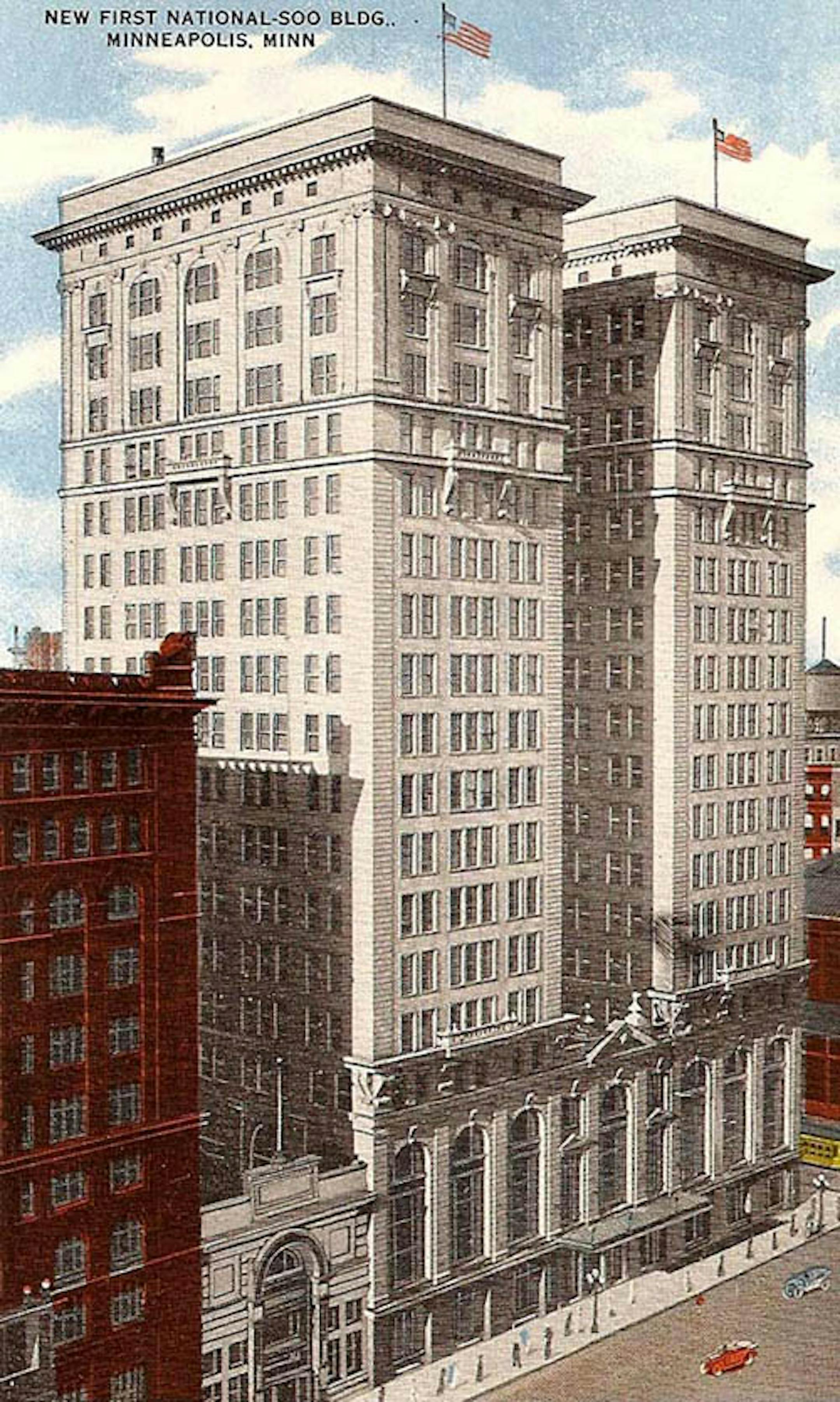 This story on the Minneapolis building boom notes that it's mostly residential. That seems telling. Usually you have a boom downtown, it's office space - but now most of the construction is for living, not working. This isn't unusual; the big new towers in NY and Chicago are residential as well. The 4th biggest project of the top five: The Soo Line Building. I wonder whether the lobby will have any historical information for tenants, or just pretend the building's previous life didn't matter. In case you're curious, this stood on the site over a hundred years ago: