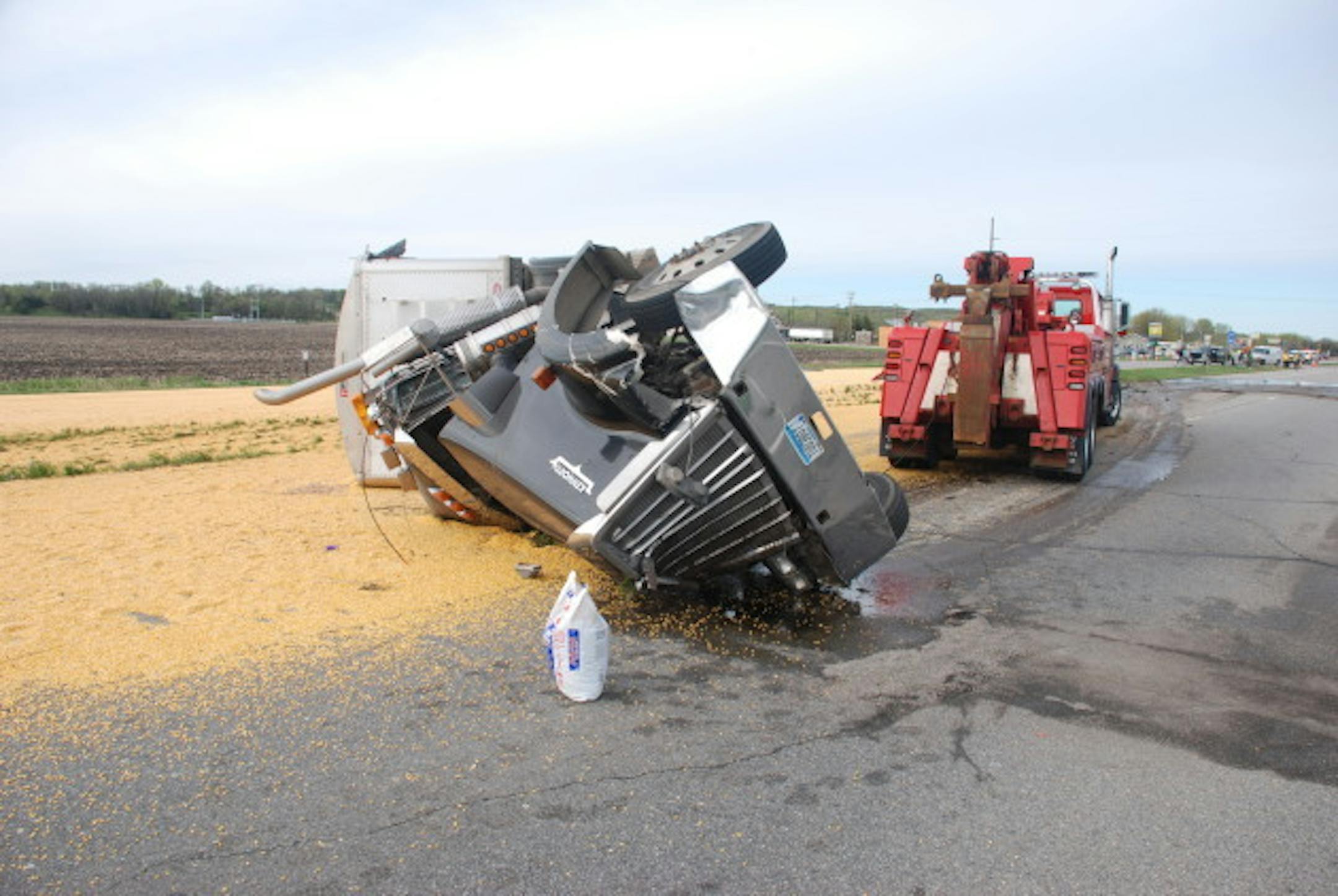 A truck hauling bushels and bushels of corn overturned just after 8 a.m. at Delaware Avenue in St. Lawrence Township of Scott County - that's just south of Jordan - and spilled its load. The highway in both direction was closed for several hours. By early afternoon, lanes were back open but crews were still on the scene cleaning up.
