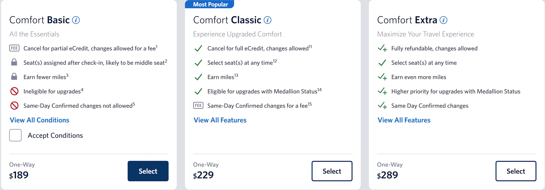 Comfort Basic means, basically, that a seat with a little more legroom will get you fewer perks than Comfort Classic, for a lower price. I know people who would take that bargain. But there are caveats.