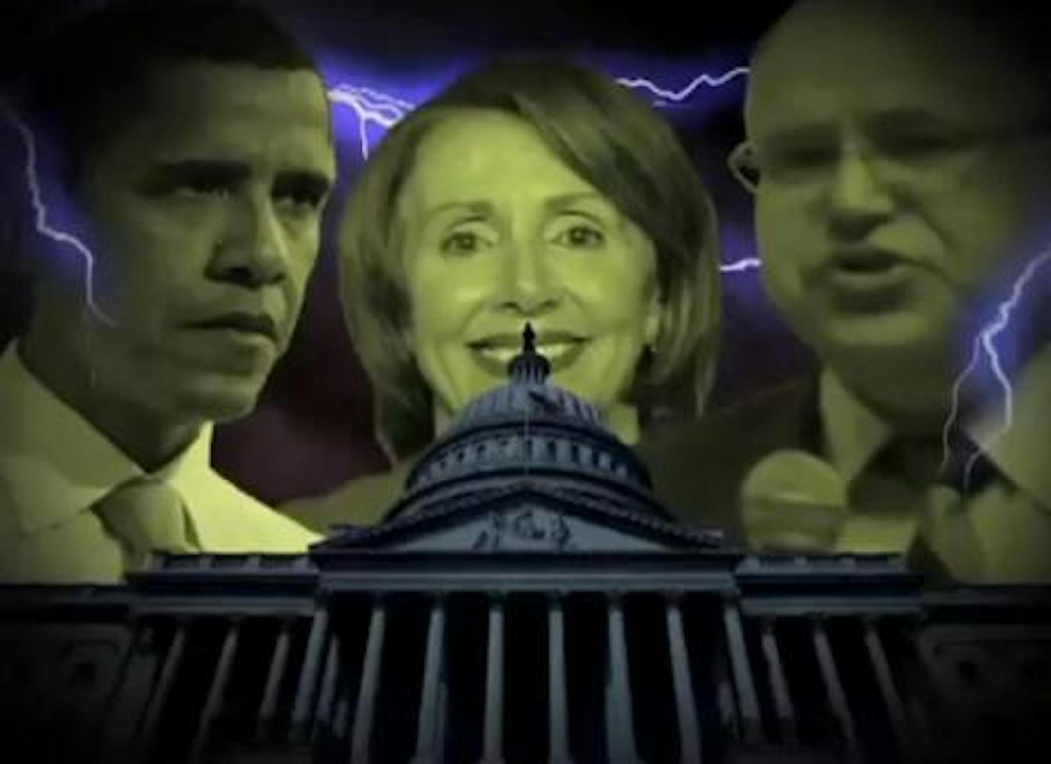 Just to hammer the point home, Walz's face then appears next to Speaker Nancy Pelosi and Barack Obama as lightning strikes over the Capitol.
