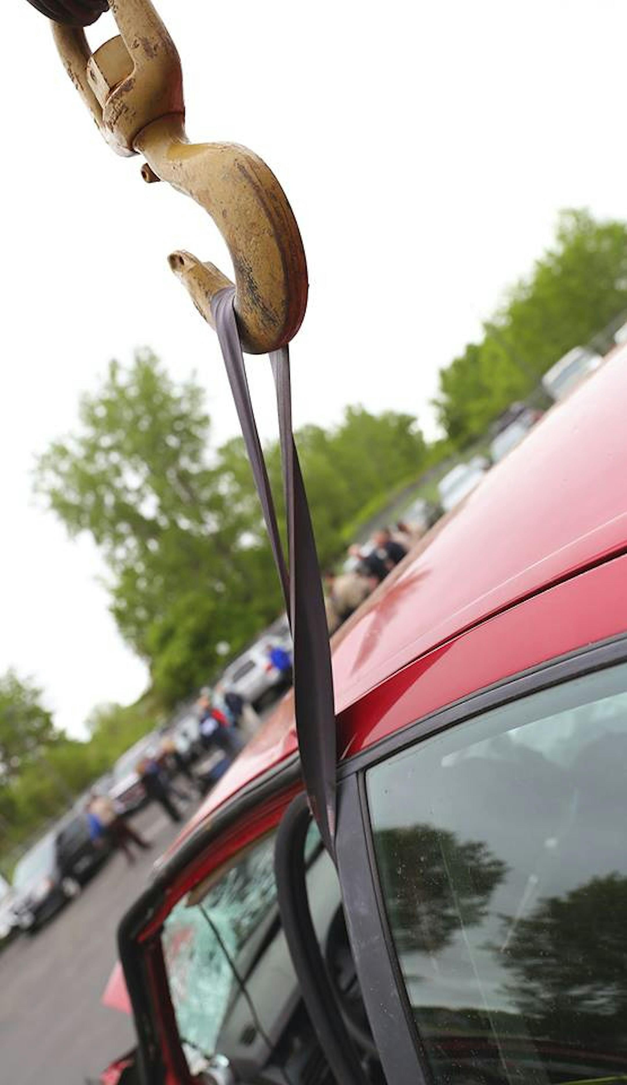 Just how strong is a seat belt? Strong enough that a tow truck used one to lift a 3,000 pound car.