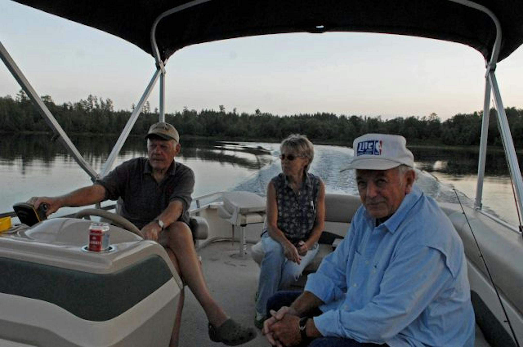 With him on his roomy craft was Pat Smith, a woman Grant has grown close to following the death of his wife of 60 years, Pat Grant. Along also was Norb Berg, a longtime hunting and fishing companion of Grant's and the person he credits for "saving his life" after he moved to Minnesota from Winnipeg in 1967 to coach the Vikings.