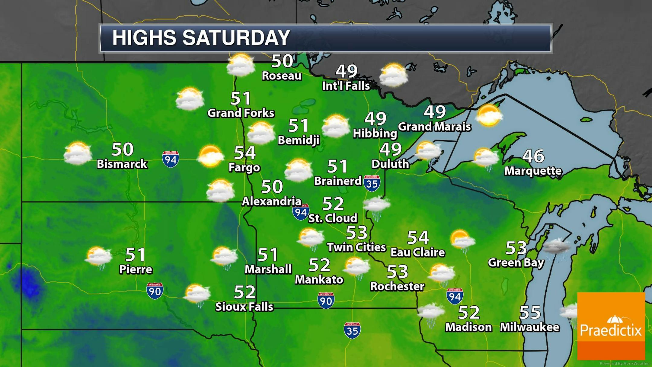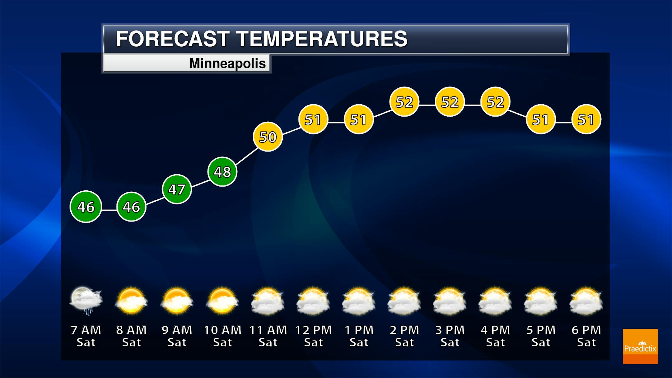 For Minneapolis on Saturday, October 14th, we'll have a partial solar eclipse, where nearly 50% of the sun will be covered. The maximum eclipse time will occur around 11:48AM CT. Unfortunately, it look very cloud around the state, so we will not be able to see this celestial event.