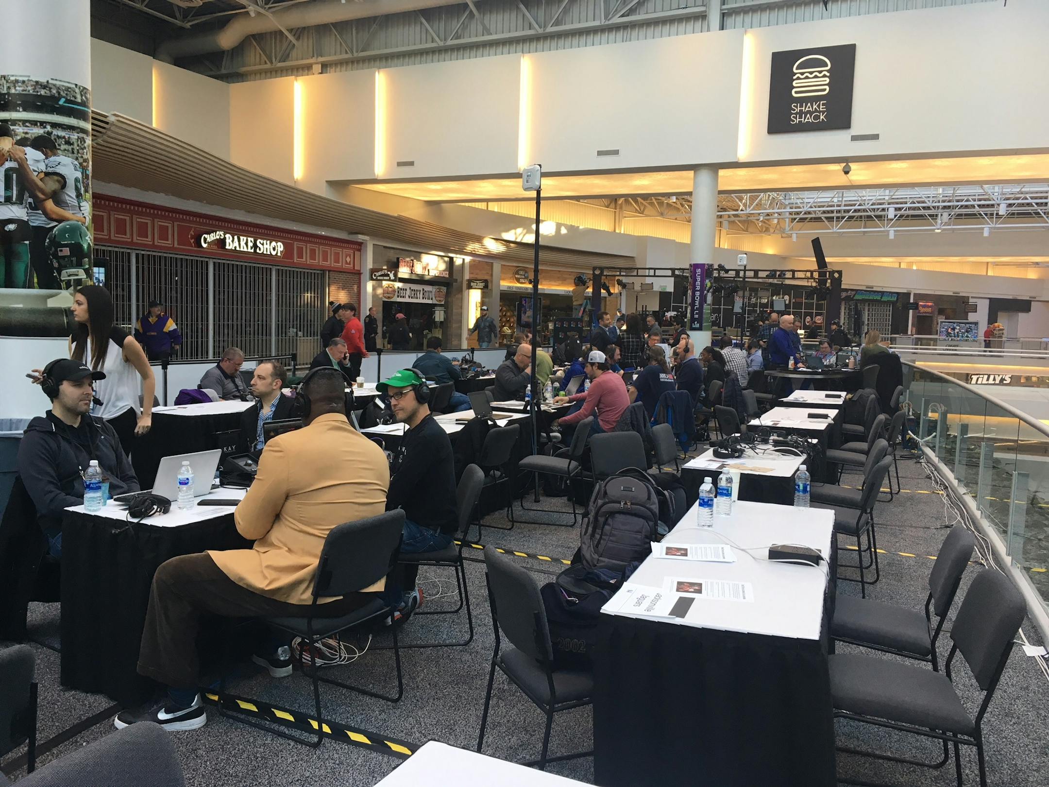 Signs point you clearly and emphatically to the various Super Bowl media areas at the Mall of America, the massive shopping complex in Bloomington that this week is doubling as a hub for all things related to the big game on Sunday.