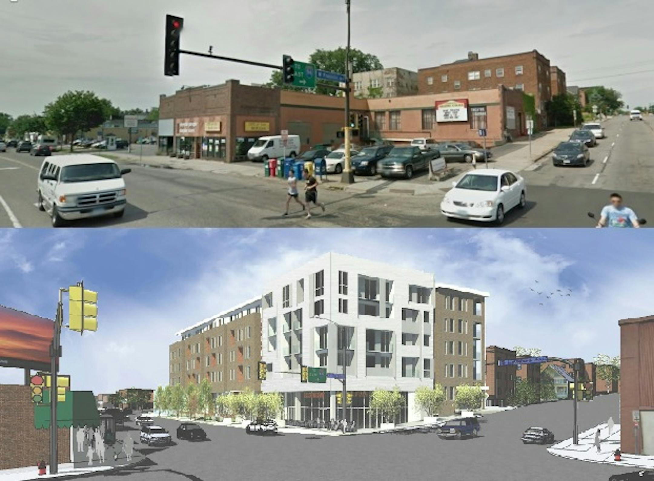 Above: A present-day view of the Franklin-Lyndale intersection, juxtaposed with a recent rendering of the project.