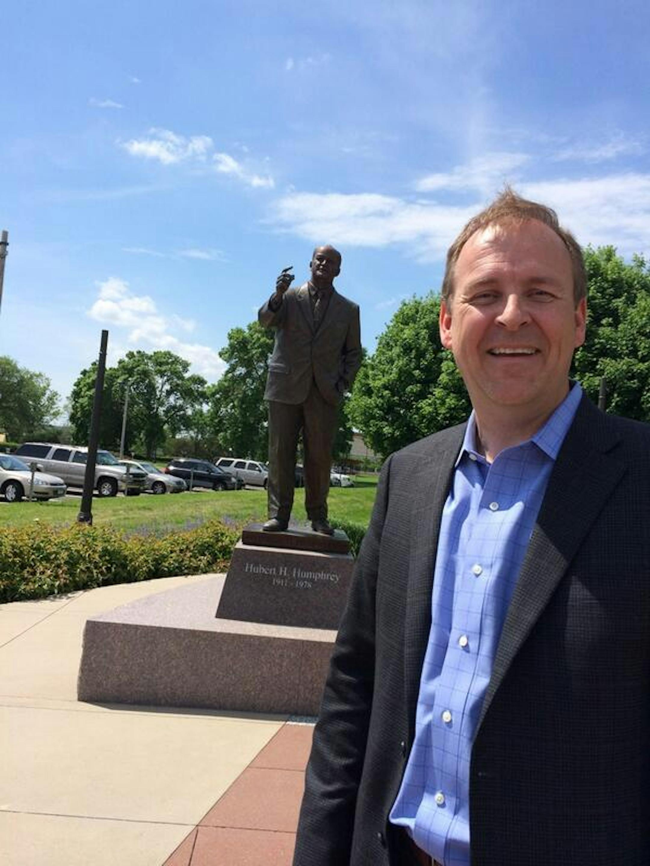 Standing near a Capitol statute of former mayor turned senator turned vice president Hubert Humphrey, Entenza noted that Humphrey was told to be quiet in his time. Entenza demurred as to whether he was comparing himself to the much lauded Humphrey.