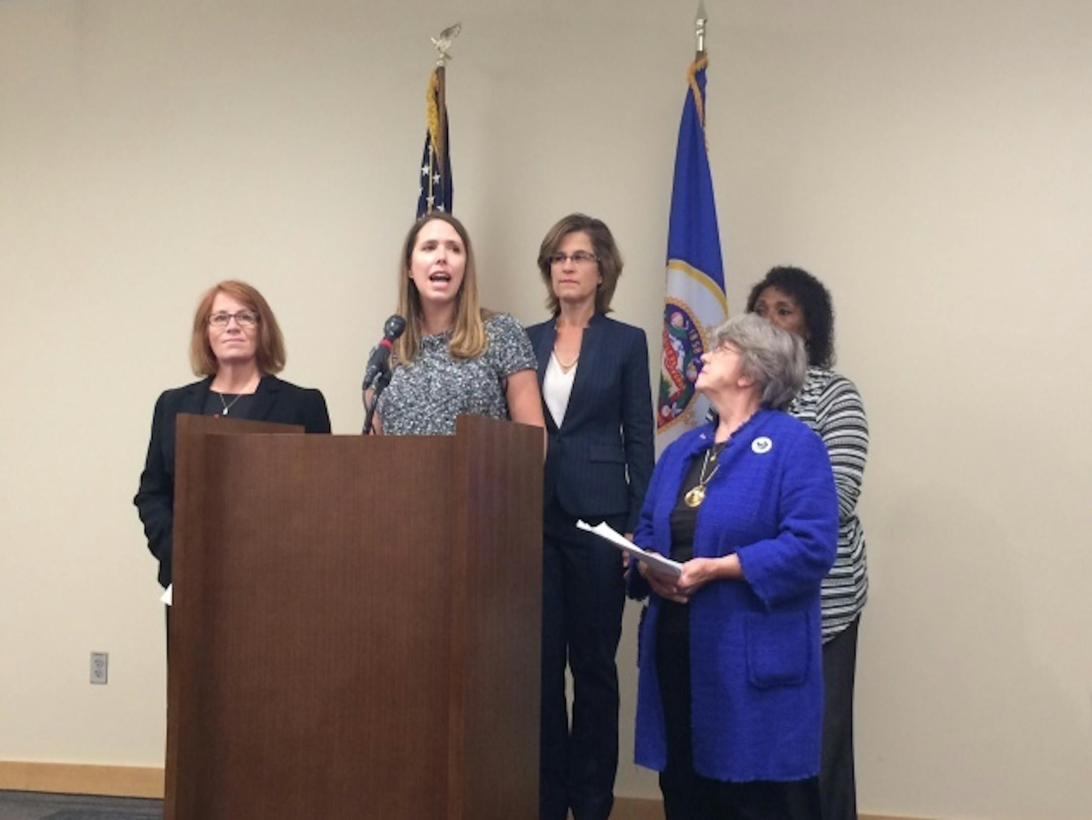 Four legislators — Assistant Senate Majority Leader Katie Sieben, Deputy House Minority Leader Erin Murphy, Rep. Rena Moran and Rep. Sandra Masin — along with State Auditor Rebecca Otto said at a news conference that Lewis' on-air comments on women, slavery and members of the LGBTQ community indicate that voters need to hear more thoughts Lewis has aired in the past.