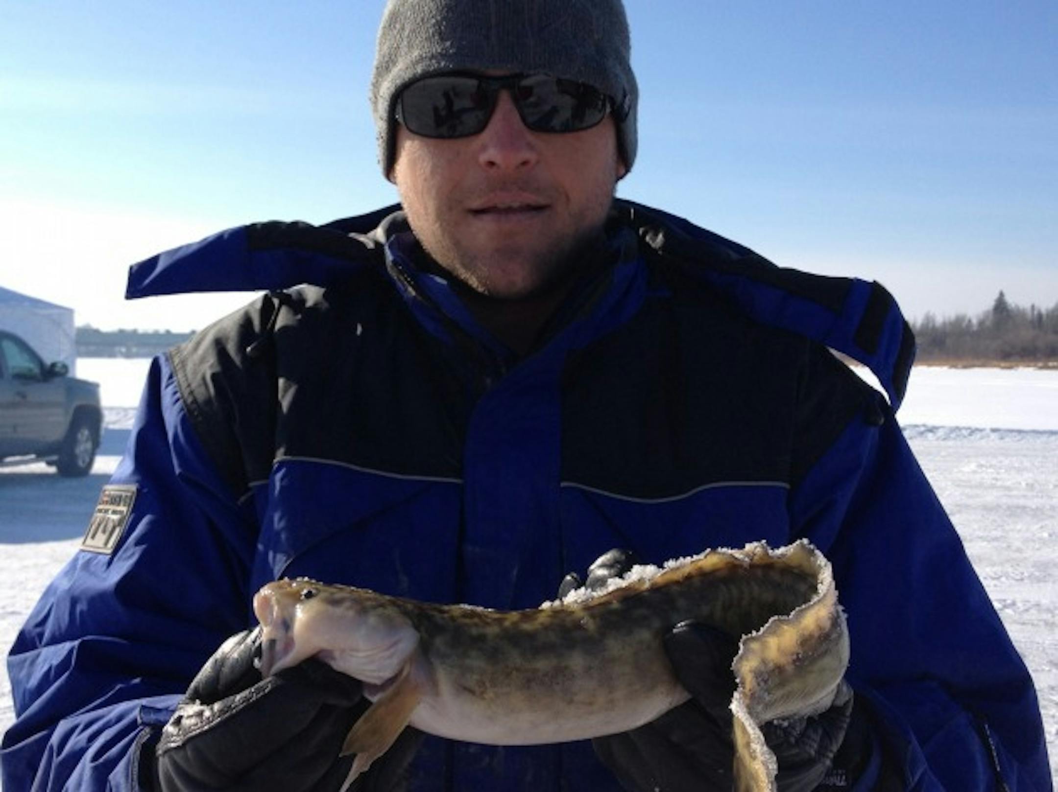 The fishing marathon started bright and early on Saturday morning. 45 anglers had been issued pledge packets and were tasked with soliciting pledges for the fishing marathon. Participating anglers would be eligible for some fantastic prizes, many of which donated by Minnesota companies including Big Lake auger manufacturer Strikemaster and Medina-based Clam Corporation. Fishing on the river proved challenging….for me it was a physical challenge as I drilled 50 holes through 30" ice! For the anglers it was battling rough currents and less than ideal conditions (clear sky and a pressure system that blew through the night before) Fish were few and far between but that didn't dampen spirits. The honor for biggest fish was awarded to Lauren Ball, who also was a top earner in the pledge category. He wasn't too proud of his freshwater burbot (that's eelpout to you me!) but I assured him that somewhere in the Walker, MN. area people would be pleased.