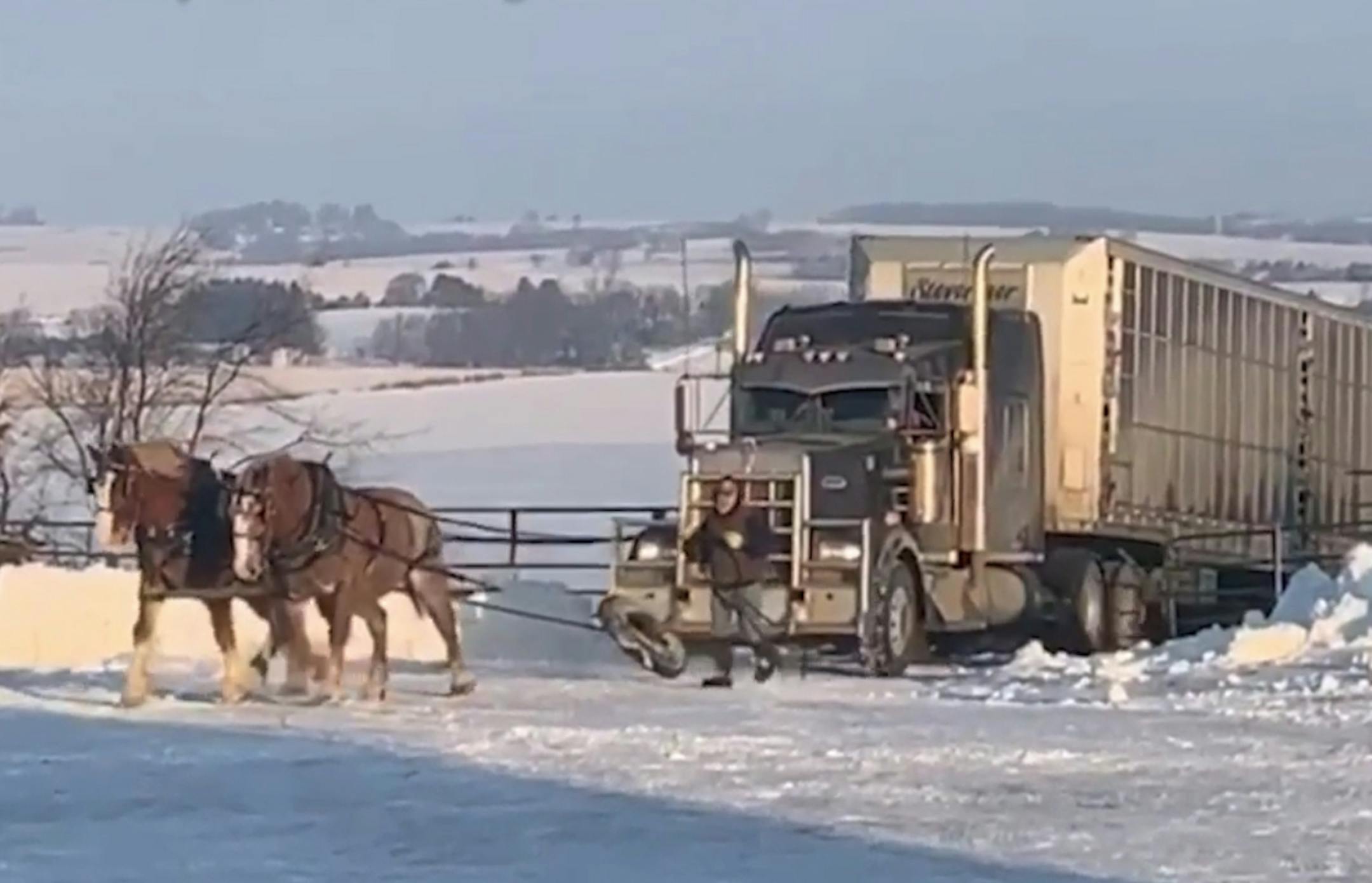 A pair of Belgian draft horses named Molly and Prince became Minnesota's latest viral video stars when, with a mighty pull, they towed a semitrailer truck up an icy driveway.